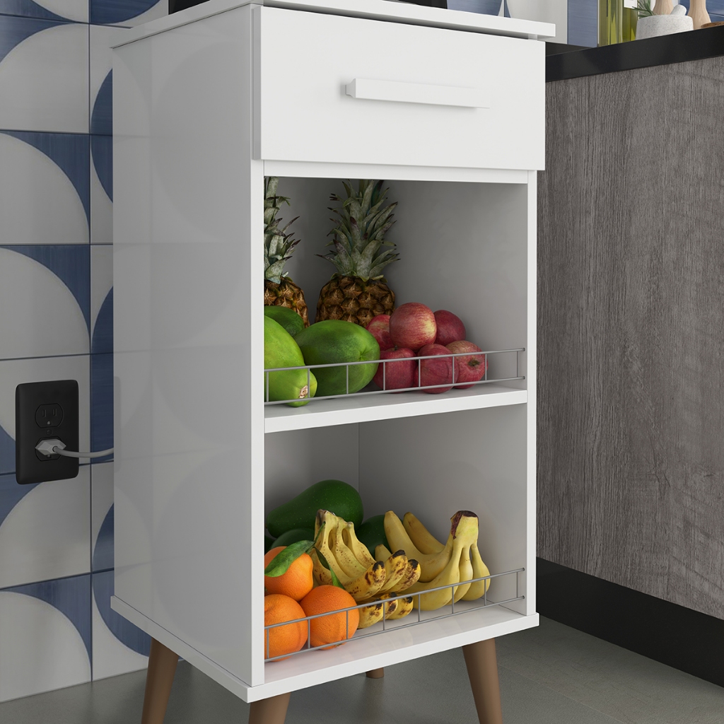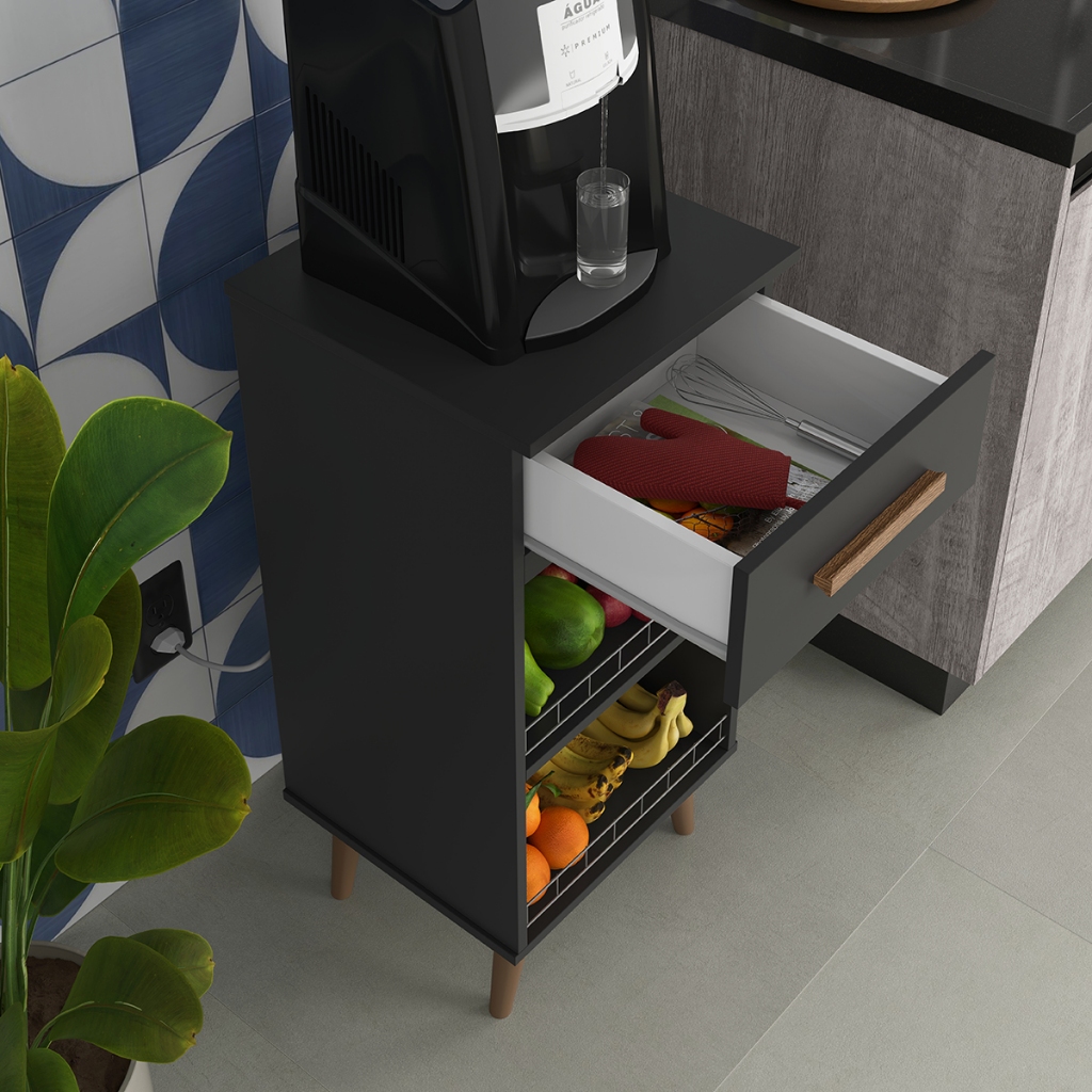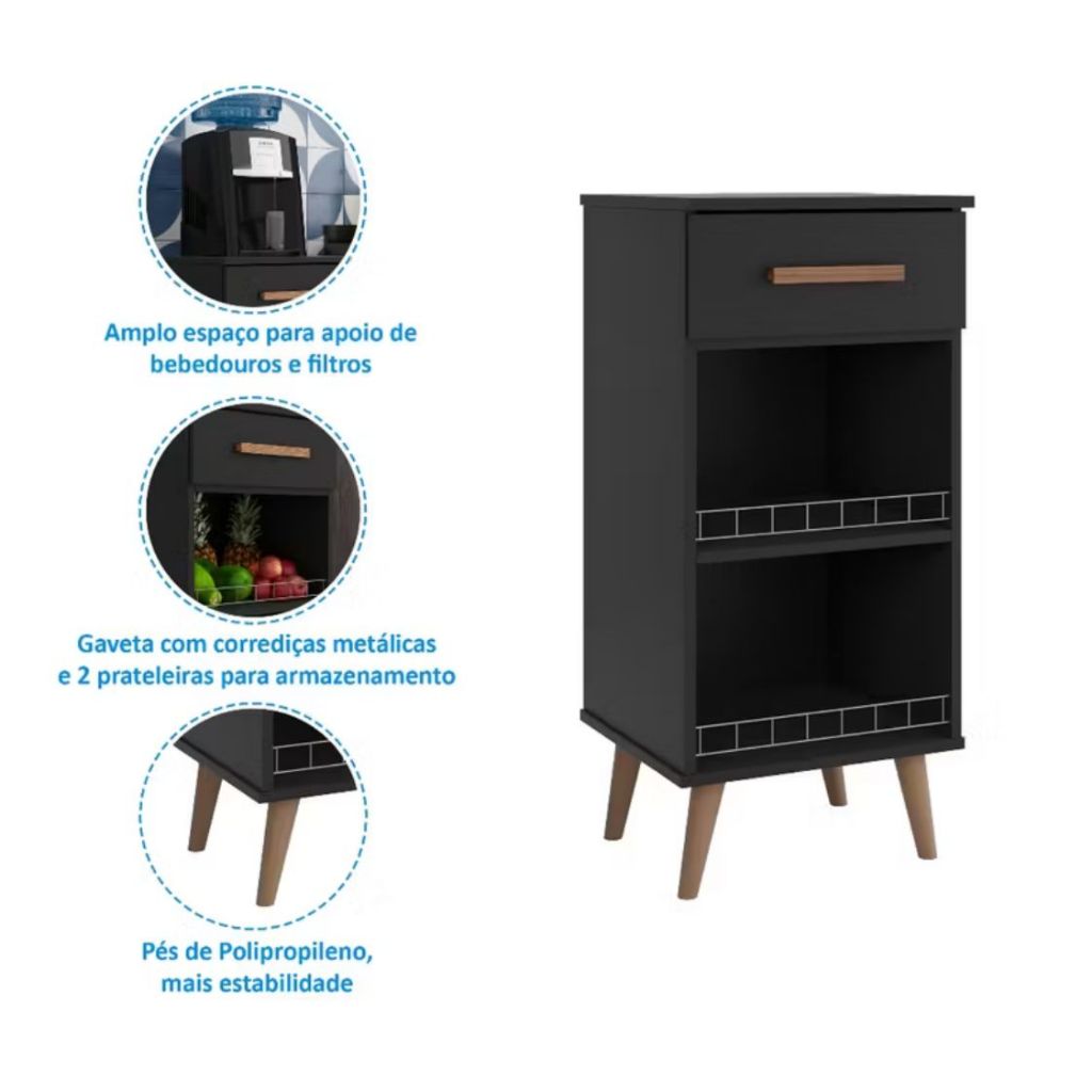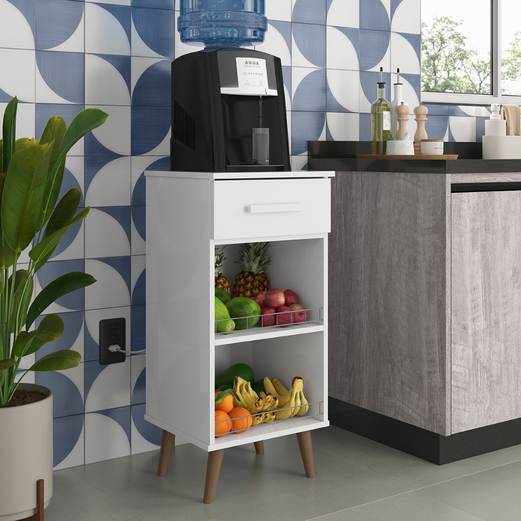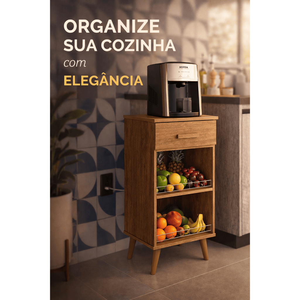 Balcão Suporte para Fruteira Com 1 Gaveta 2 Nicho Organizador Multiuso Bebedouro Pes Palito