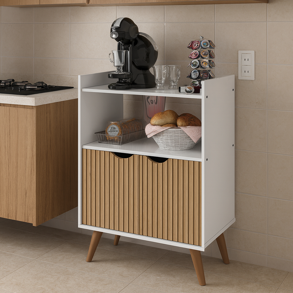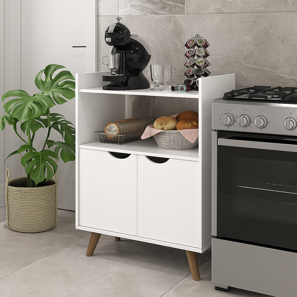 Armario de cozinha e cantinho do cafe com duas portas espaçoso para organizar GRECIA pés madeira