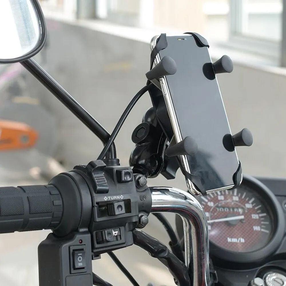 Suporte Garra para Celular Moto Universal com Carregador USB