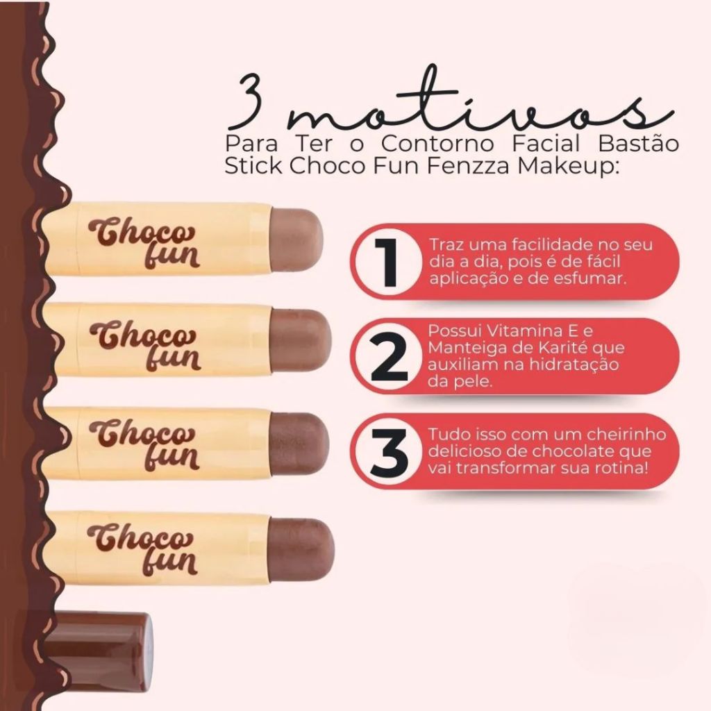 Contorno Facial Bastão Stick Choco Fun Manteiga Karité - Fenzza