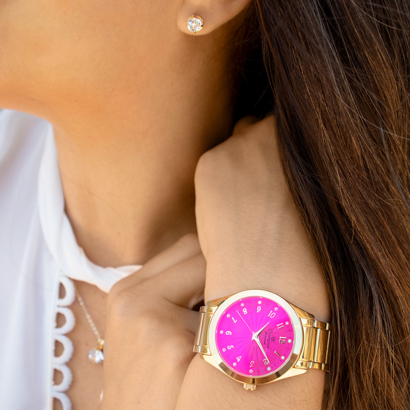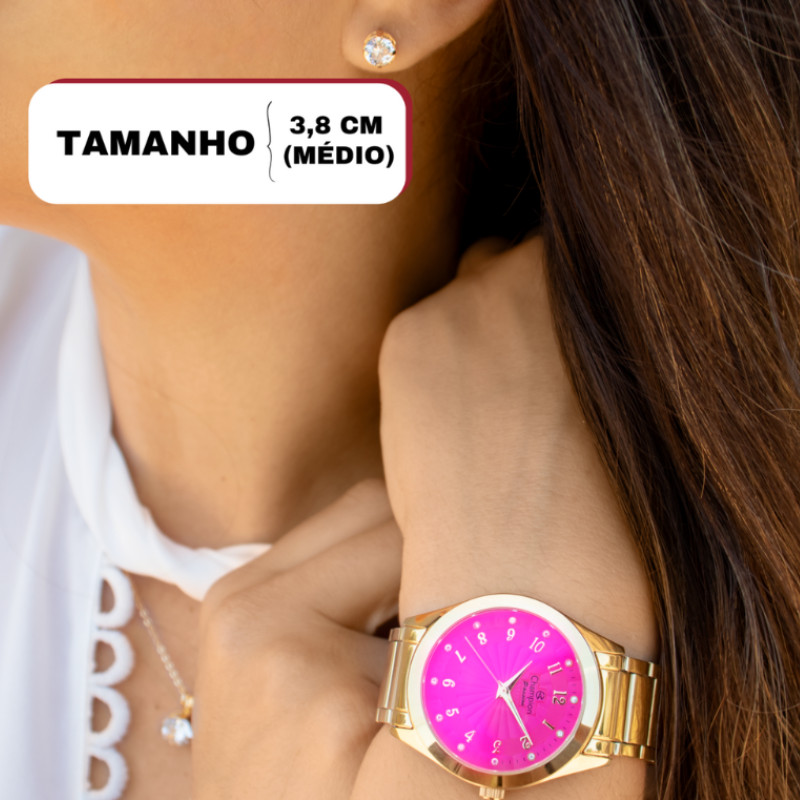Relógio Feminino Champion Analógico Dourado Rosa Prova D'agua CN29409J Colar e Brincos