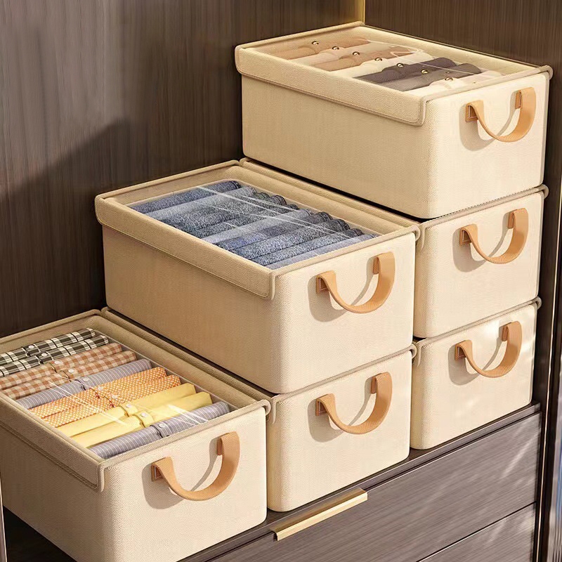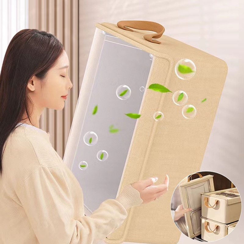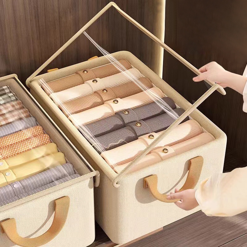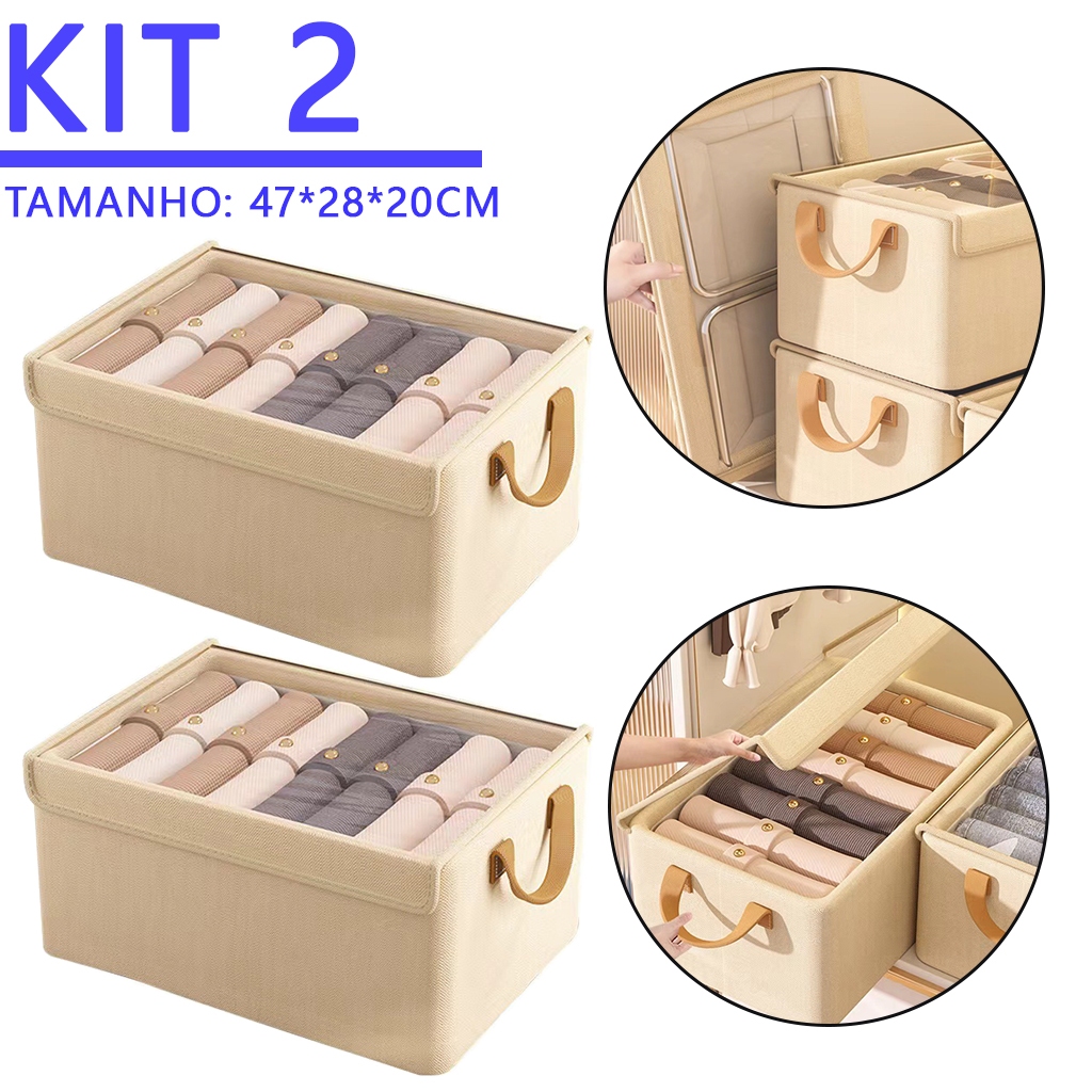 Esta caixa de arrumação multifuncional e dobrável com tampa é perfeita para guardar roupa e brinquedos