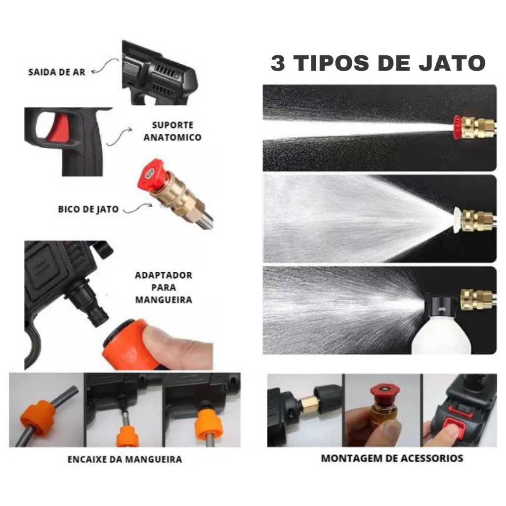 Lavadora Alta Pressão Lava Jato Portátil Recarregável Com Maleta e Acessórios Recarregável Sem Fio Para Carros E Jardins