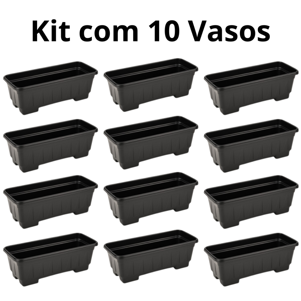 Kit 10 Vasos Floreiras Grande Preto Plástico Resistente Jardim Jardinagem Flores Suculentas