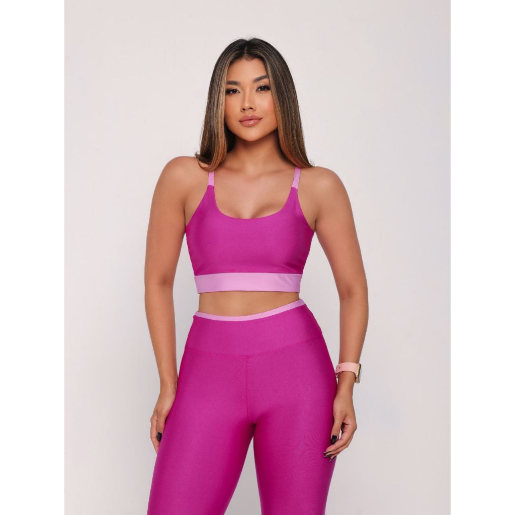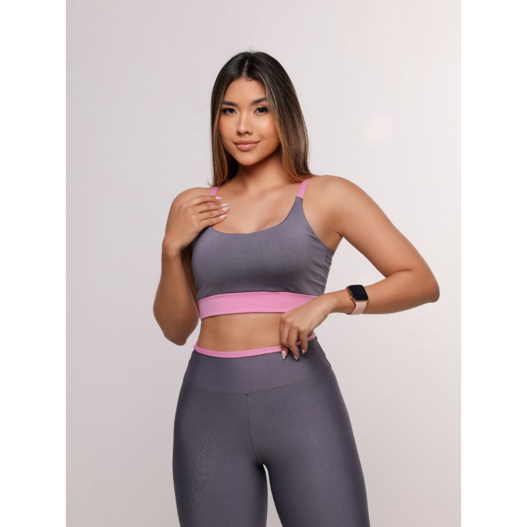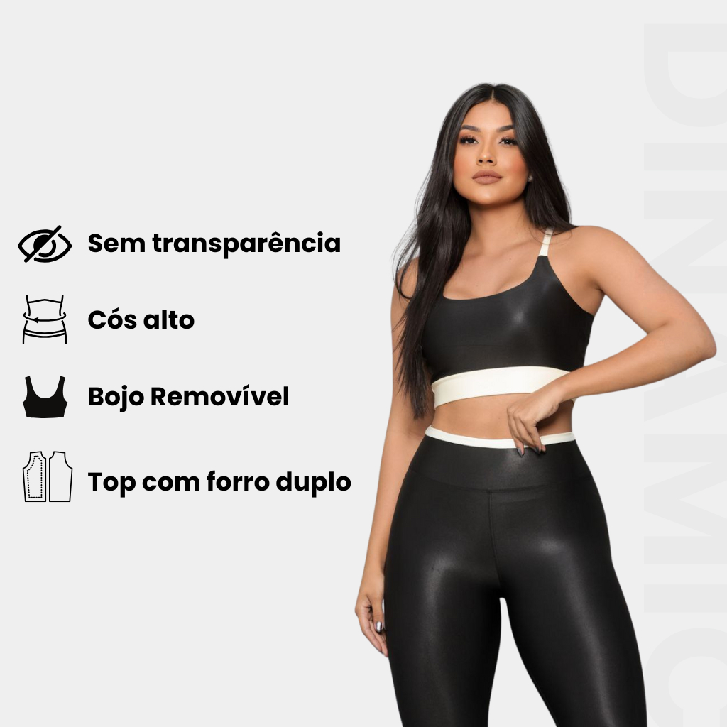 Conjunto Academia Fitness Calça Legging e Top Suplex Cropped Com Bojo Removível Cos Alto