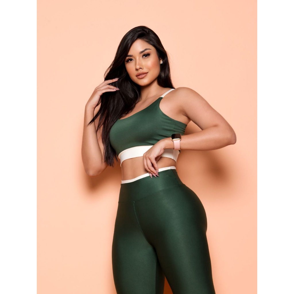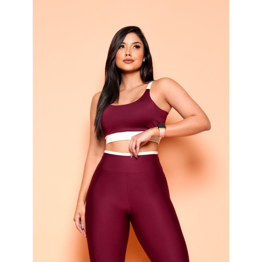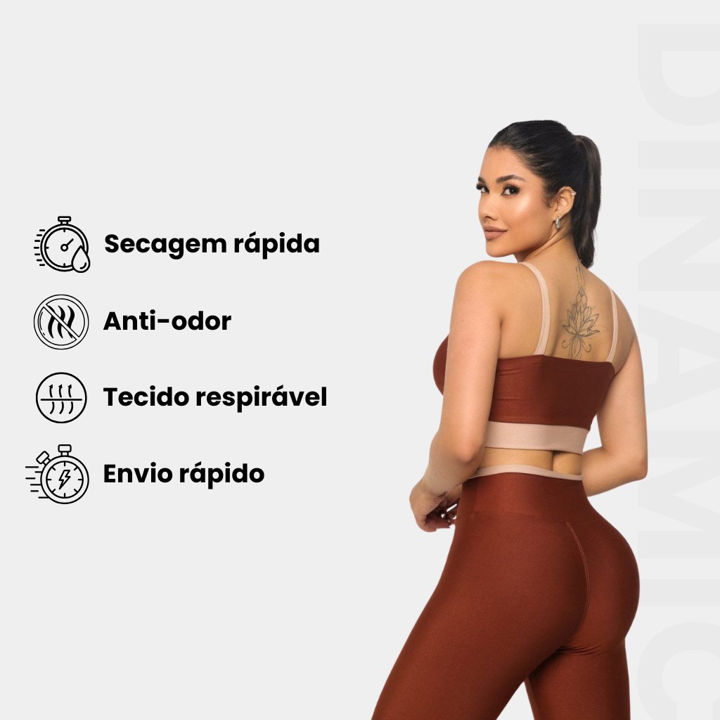 Conjunto Academia Fitness Calça Legging e Top Suplex Cropped Com Bojo Removível Cos Alto