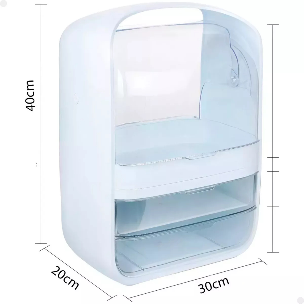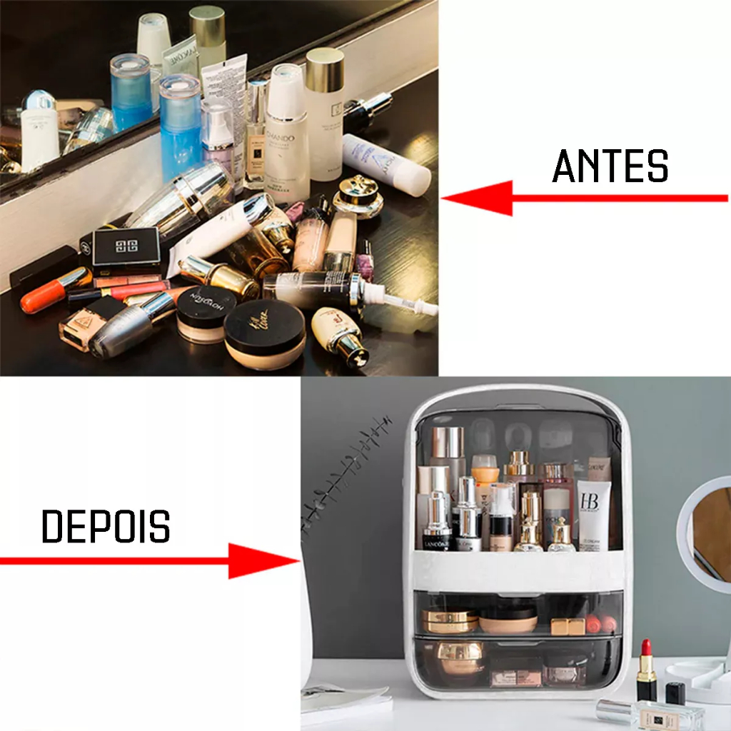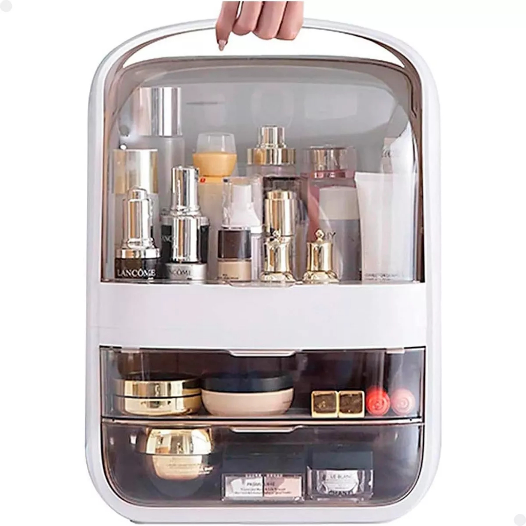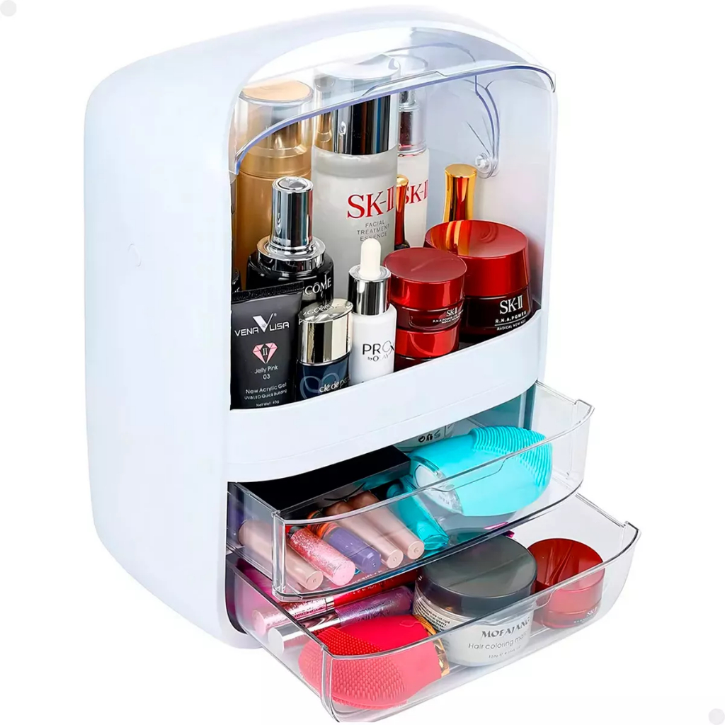 Porta Maquiagem Cosméticos 2 Gavetas Tampa Acrílico Dupla