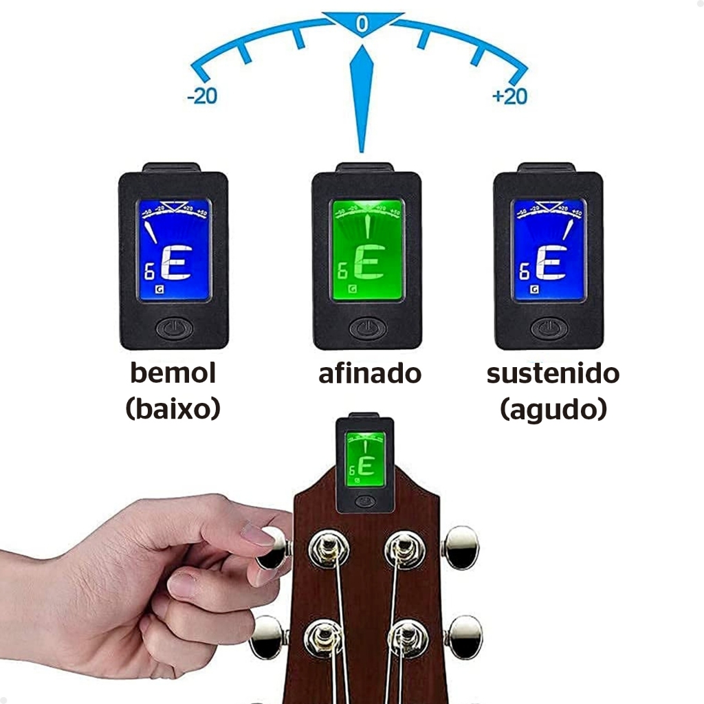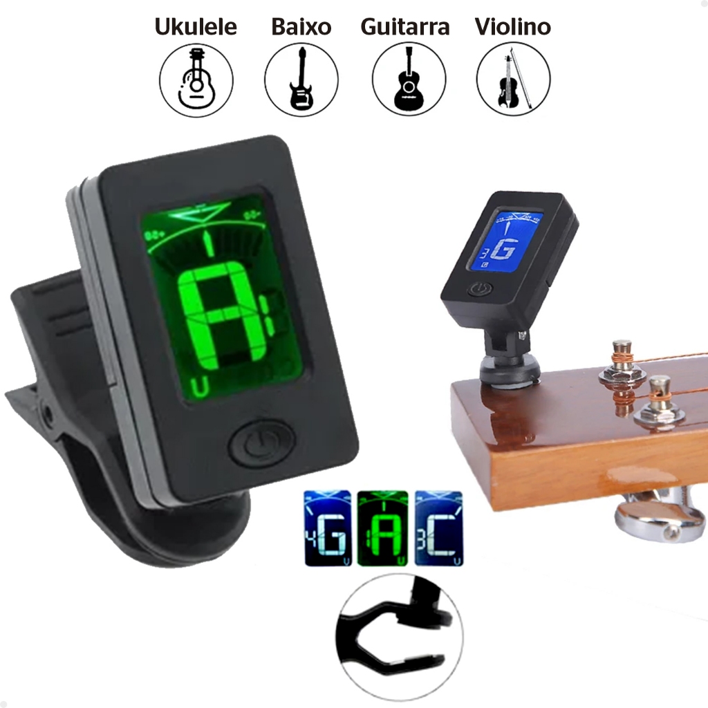 Afinador Digital Cromático Clip 360° para Violão Violino Guitarra Baixo Ukulele Cavaco