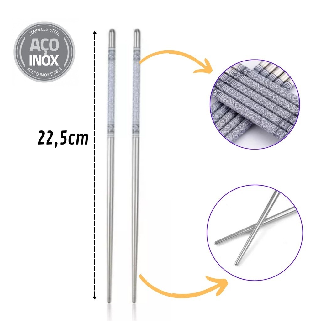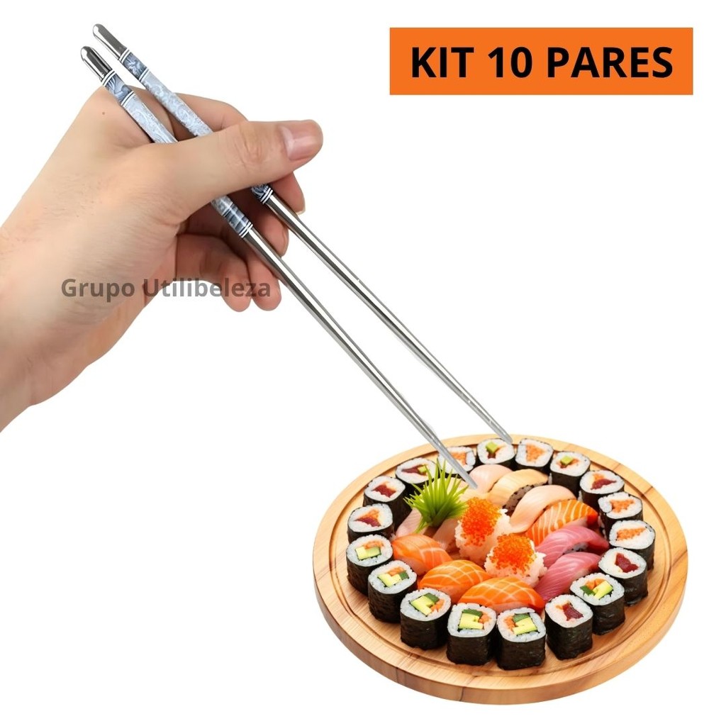 Hashi Japones Aço Inox Resistente Higiênico 20 Palitos para Comida Japonesa Oriental