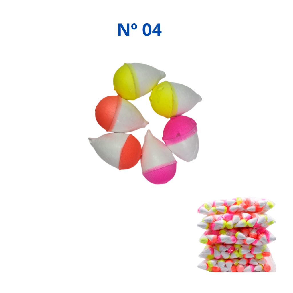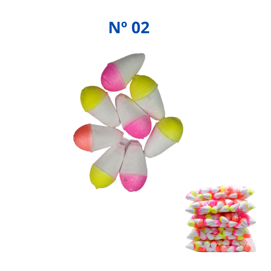 BOIA ISOPOR PESCA N°00 AO N° 12 - COR ALEATÓRIA - KIT COM 10 UNIDADES - VÁRIOS TAMANHOS