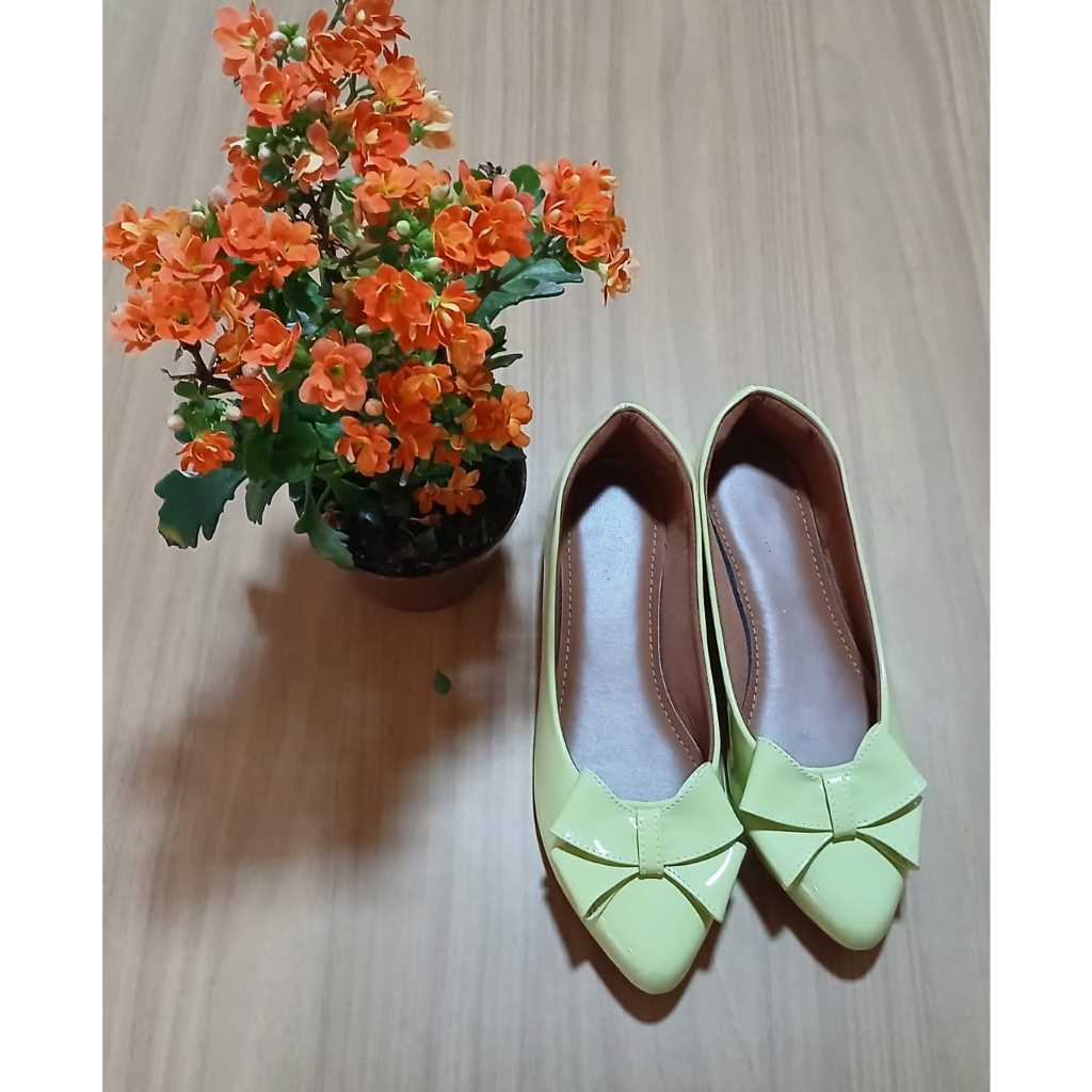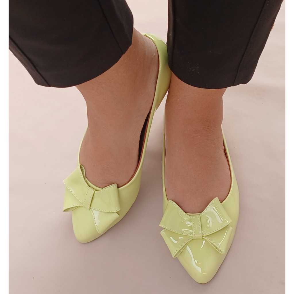 sapatilha bico fino verniz amarelo rasteira confortável moda casual dia a dia