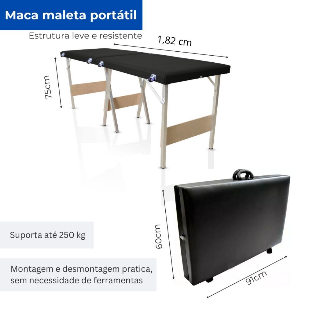 Maca Portatil Dobravel Maleta Massagem Estetica Depilação