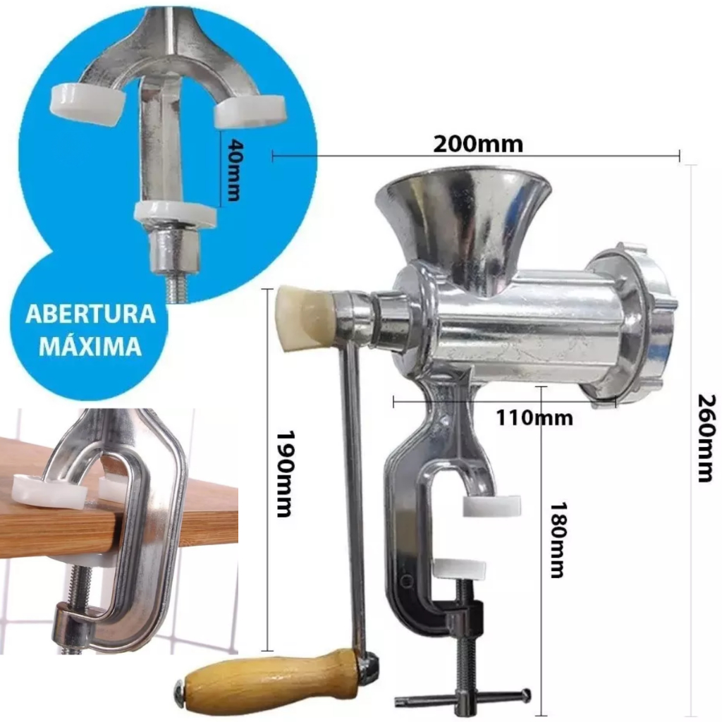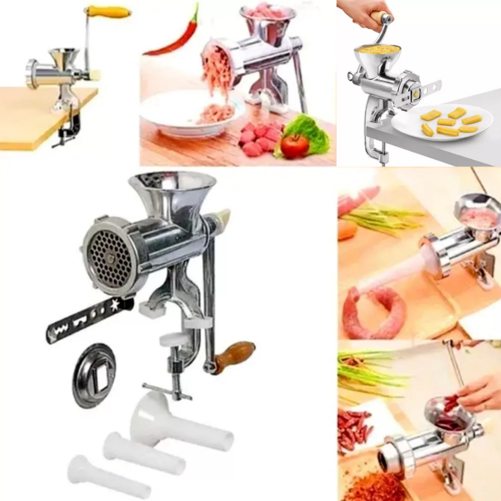Maquina Moedor Picar Moer Carne Frango Bolacha Manual N10 + 3 funil Linguiça + Modelador bolacha