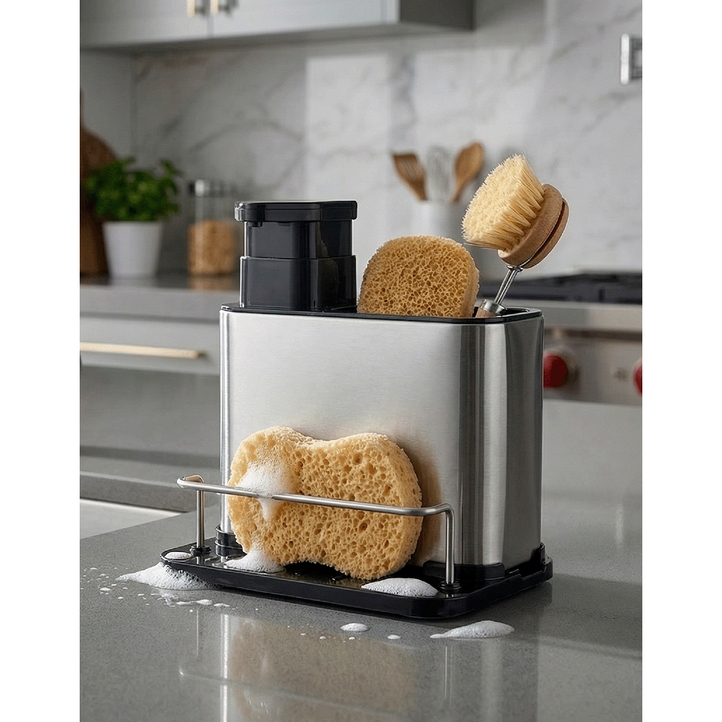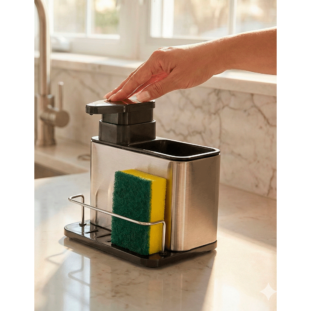 Dispenser Porta Detergente E Esponja 3 Em 1 Aço Inox Escorredor Talheres Utensilios de Cozinha