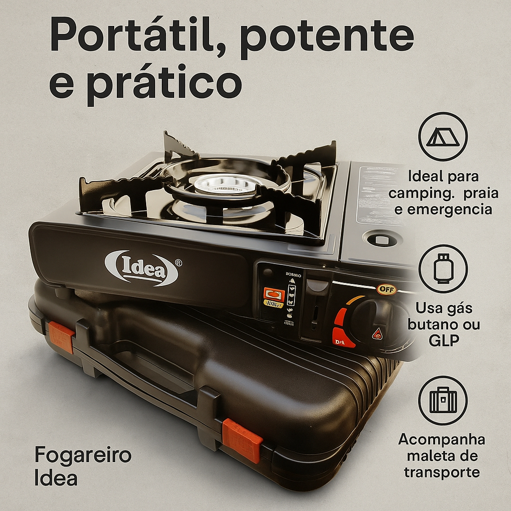 Fogareiro Portátil a Gás Camping Pesca Viagem Acendimento Automático com Maleta Fogão a Gás Portátil