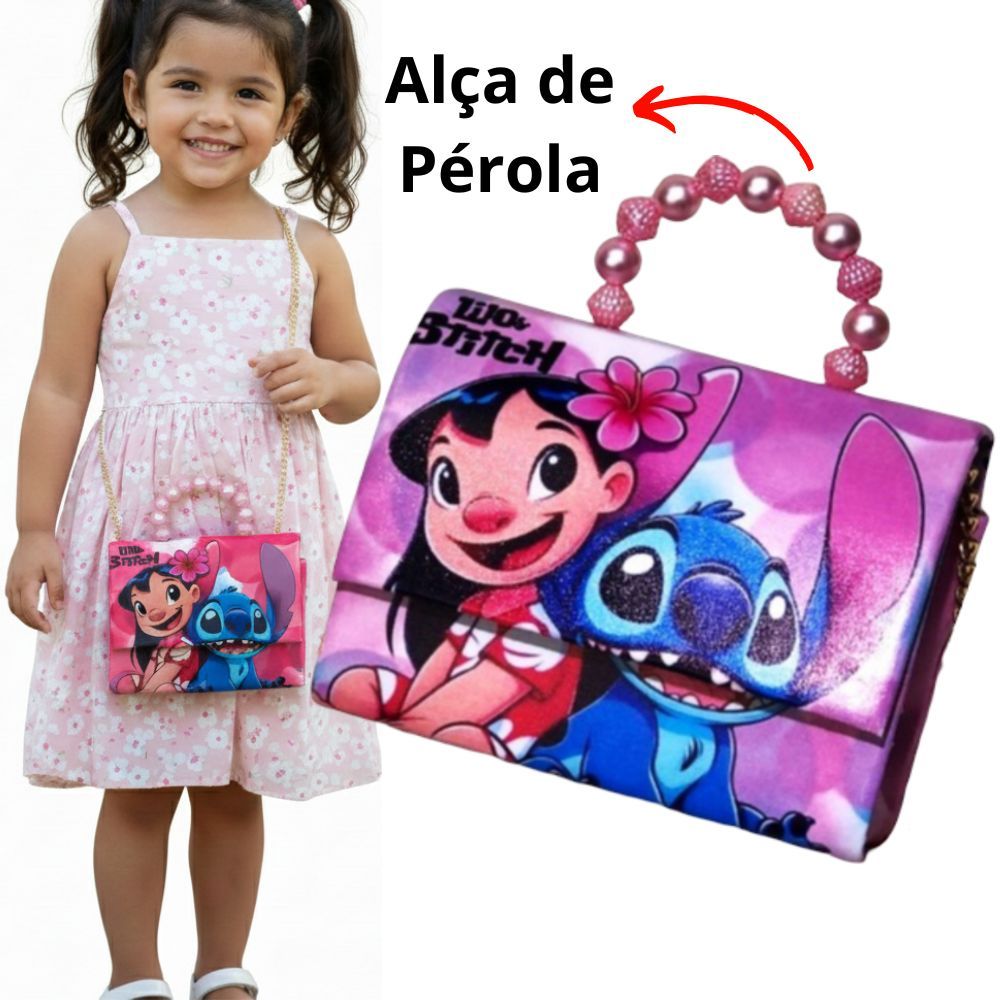 Bolsa Infantil Menina Stitch Criança Bolsinha Pequena Blogueira Festa Ombro Para Colorir