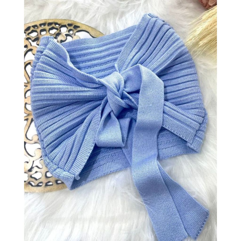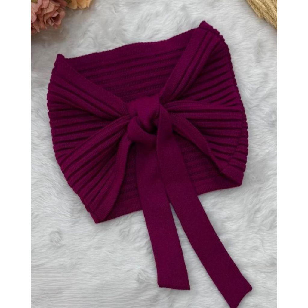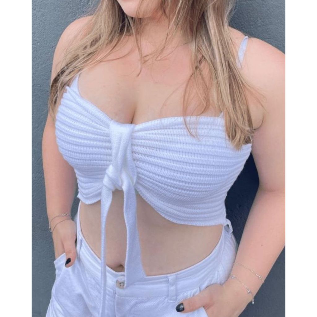 Top Cropped Faixa Tomara que Caia Amarração Tricô Modal Feminino Moda Verão Realize Tricot