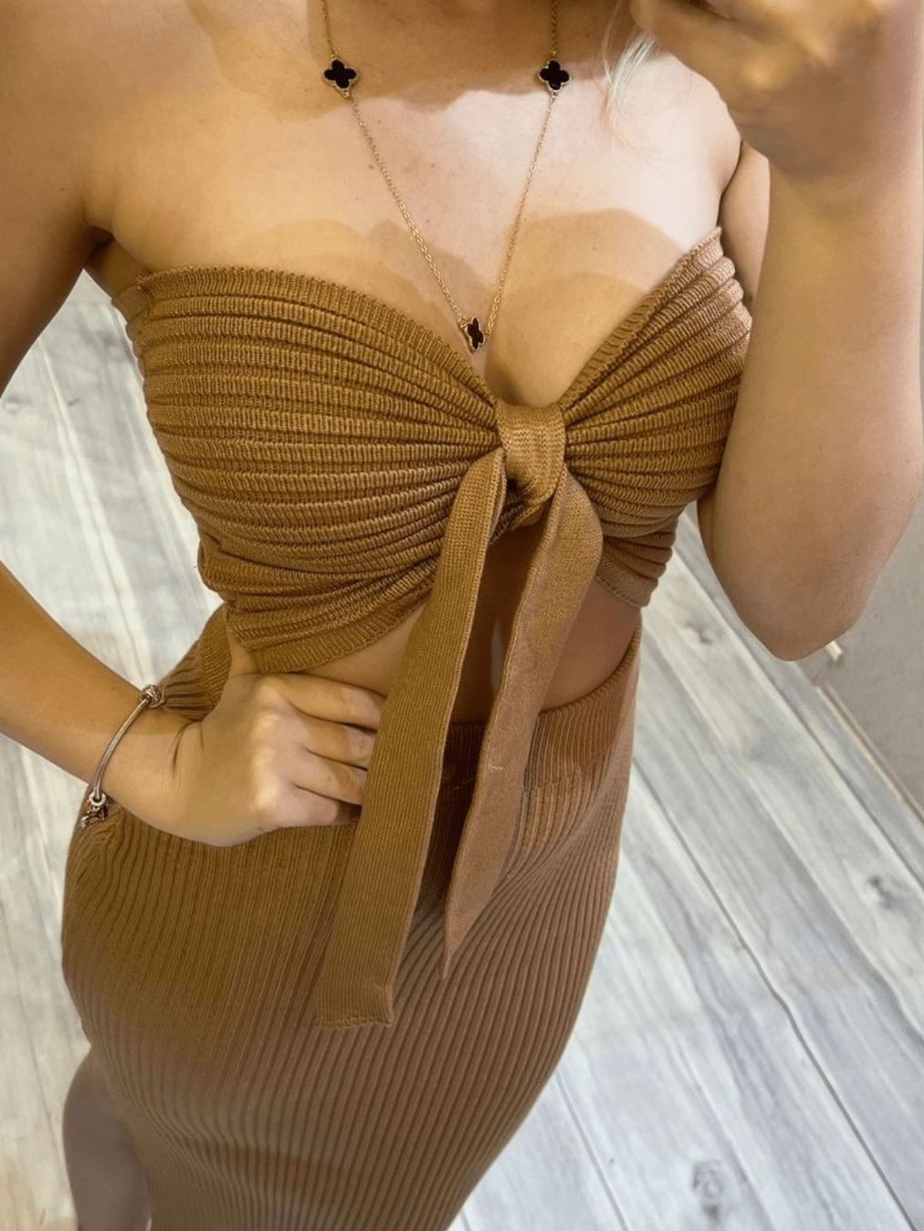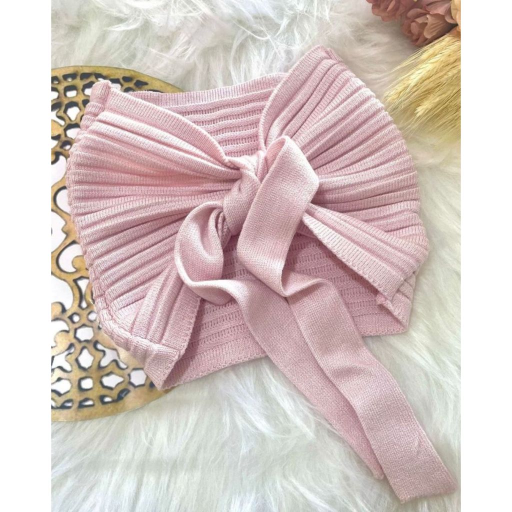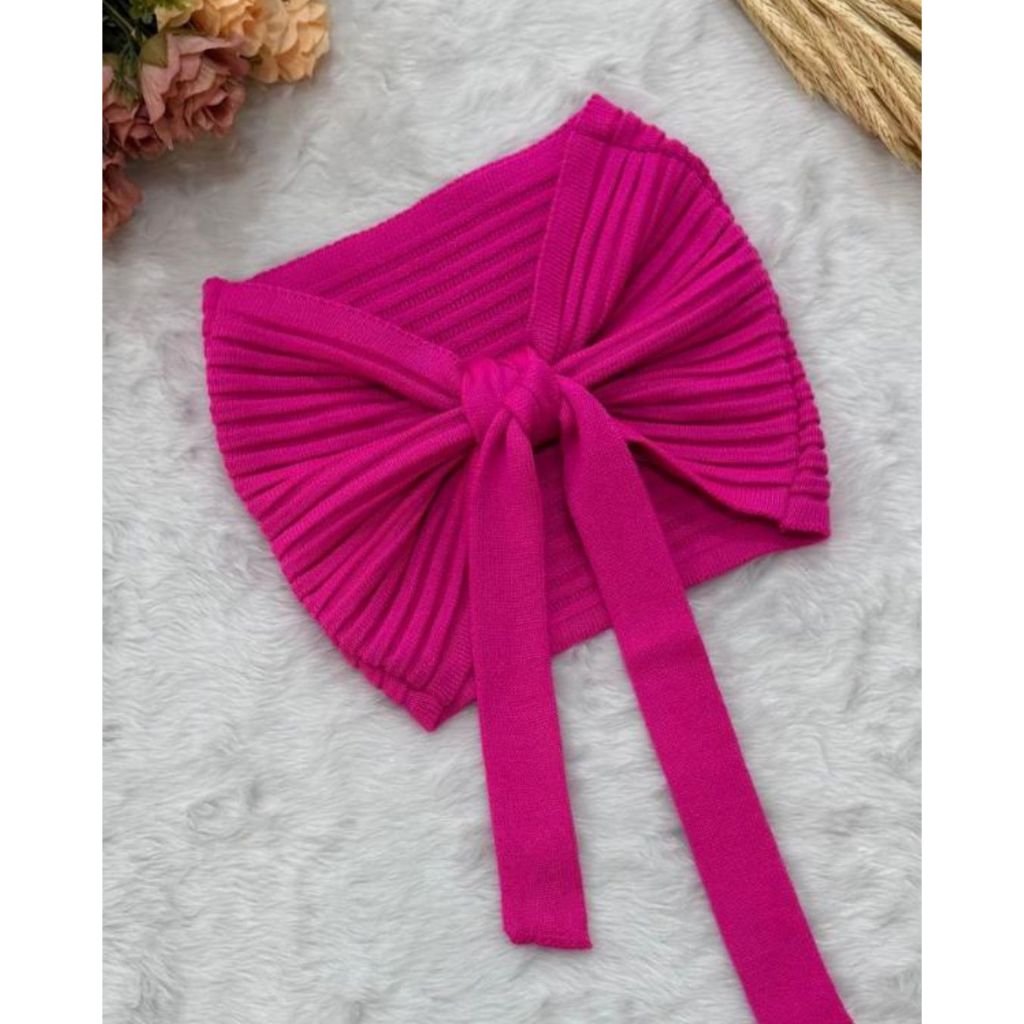 Top Cropped Faixa Tomara que Caia Amarração Tricô Modal Feminino Moda Verão Realize Tricot