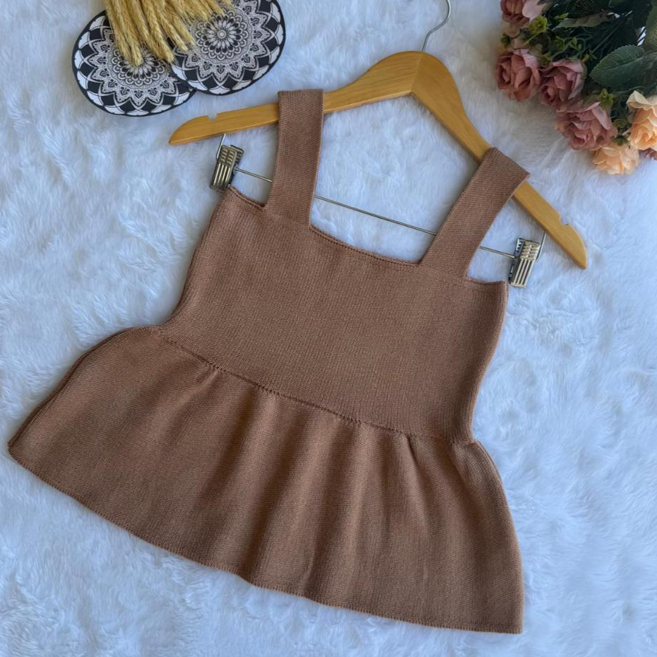 Blusa Bata Regata Feminina Com Babado Peplum Tricot Modal Verão 2025 Realize Trico Rodadinha