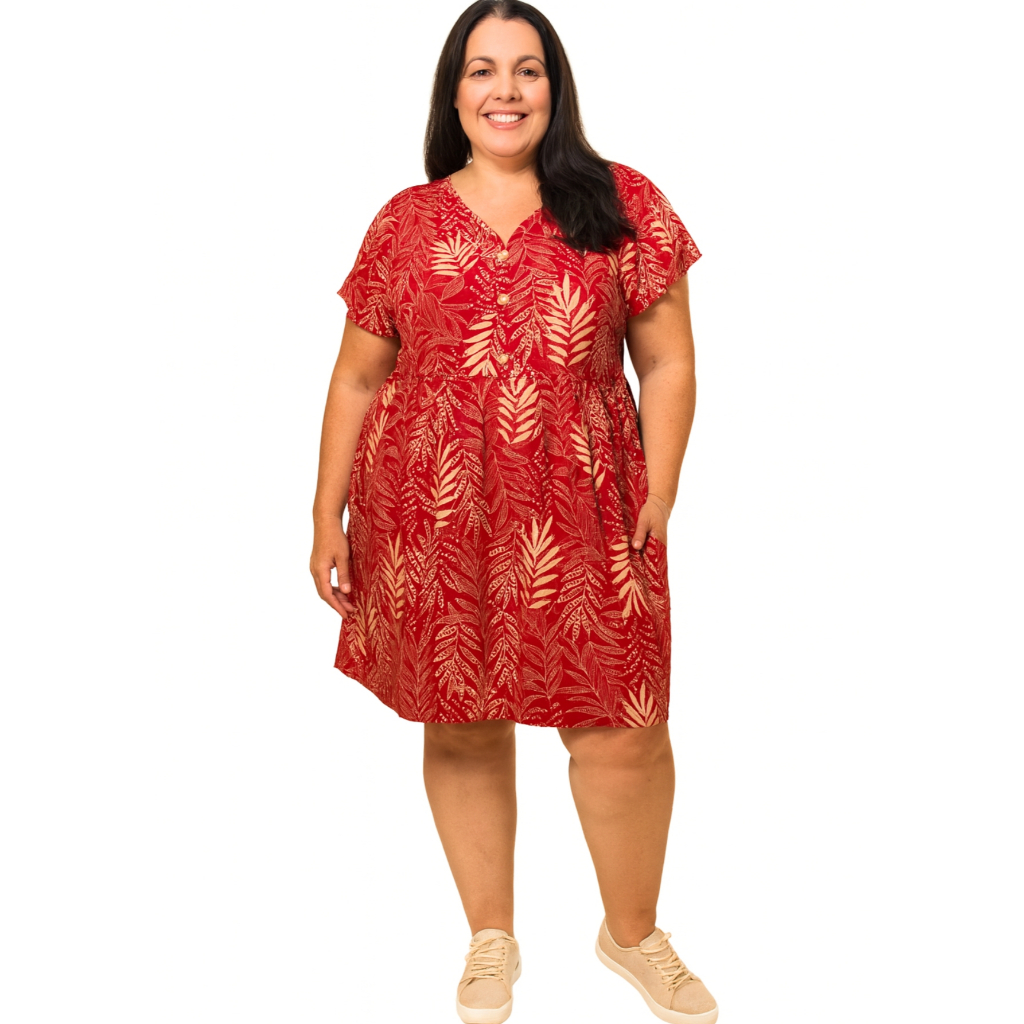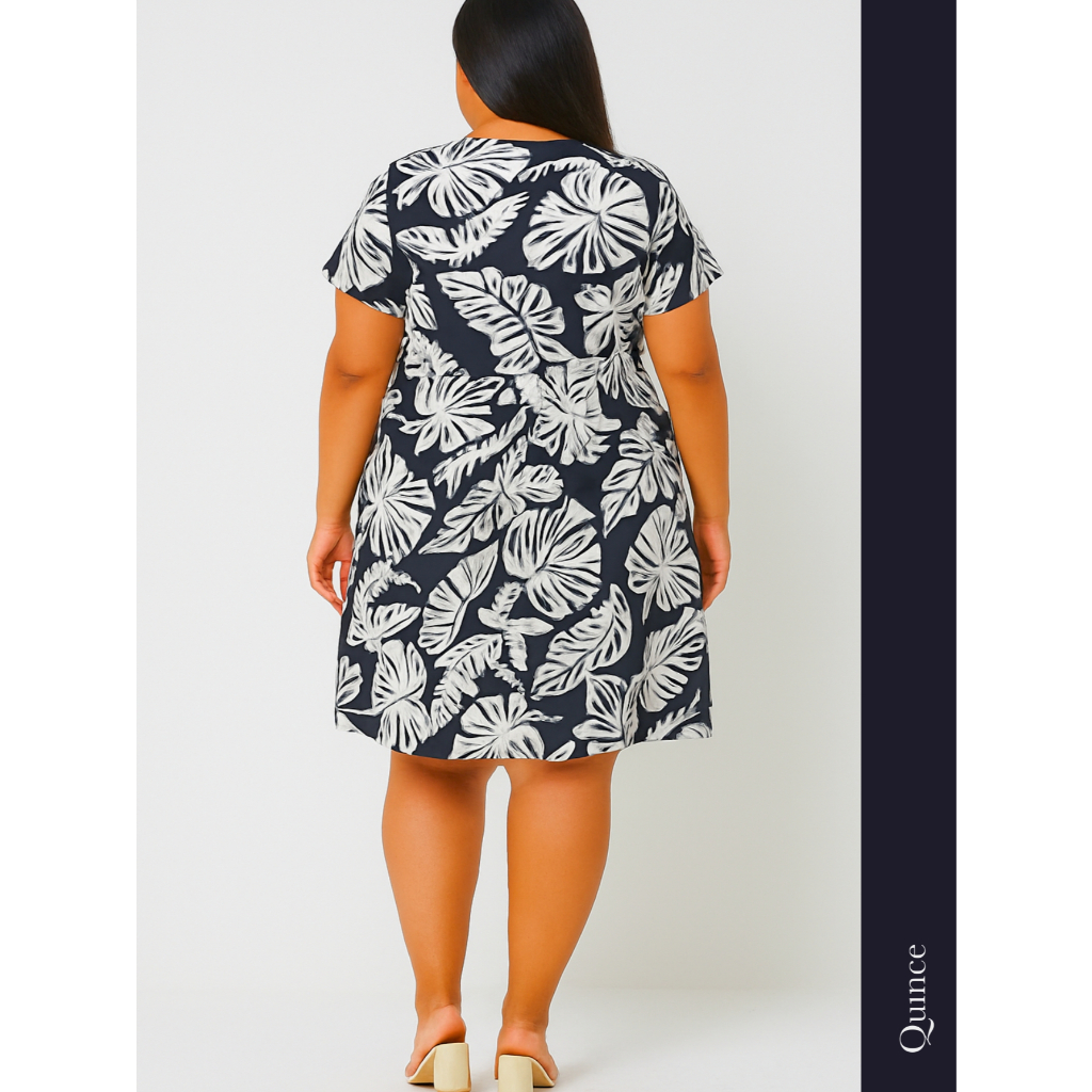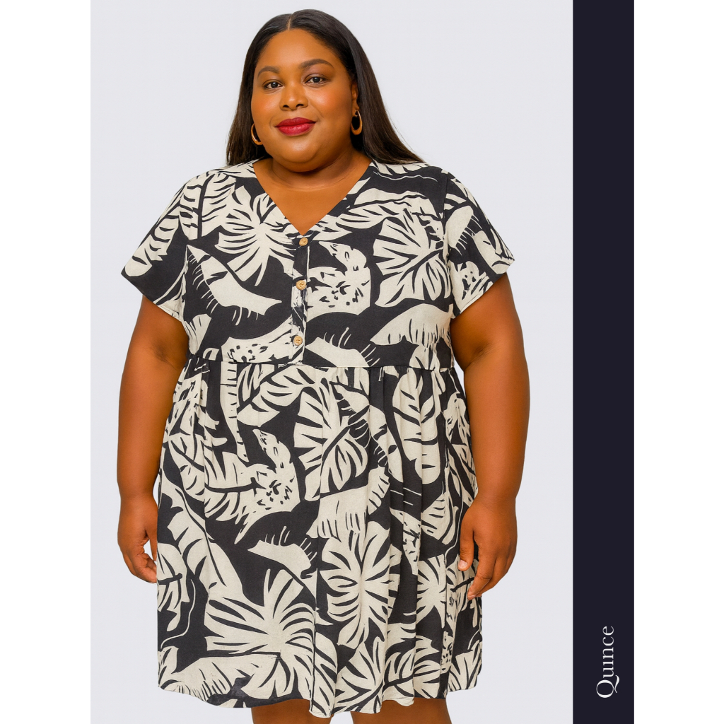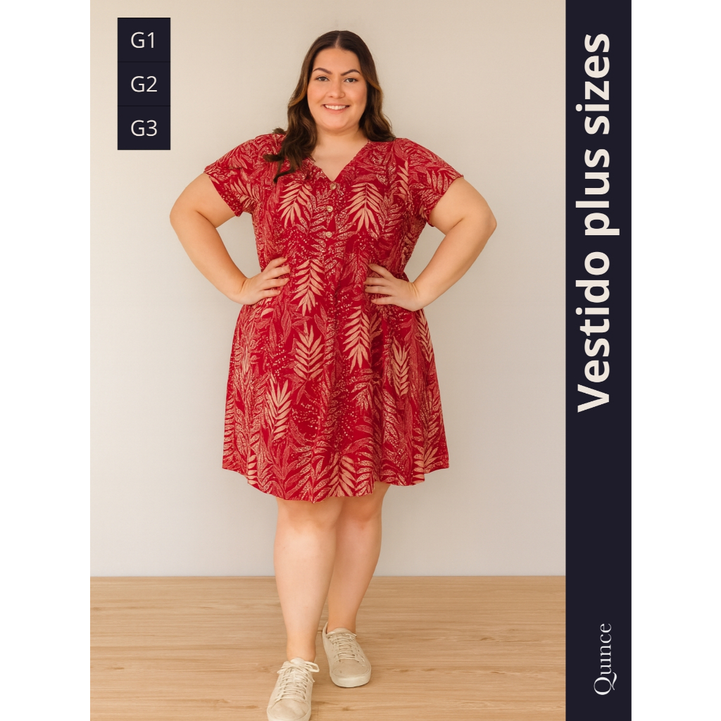Vestido plus crepe estampado 3 botões franzido manga evasê fresquinho