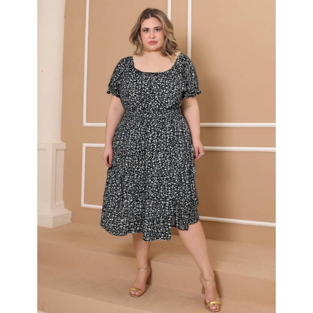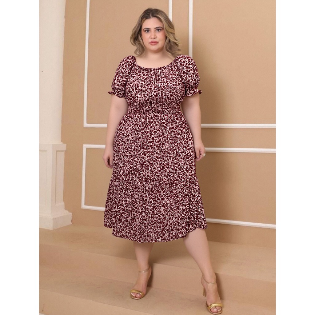 Vestido Feminino Plus Size Estampa Floral Casual Elegante e Confortável Manga Curta Camponesa Curto Maternidade Gestante