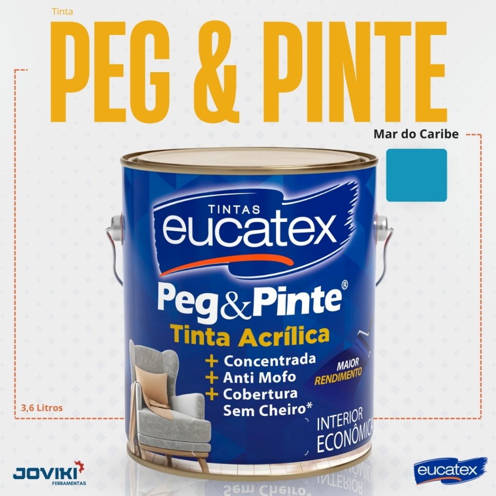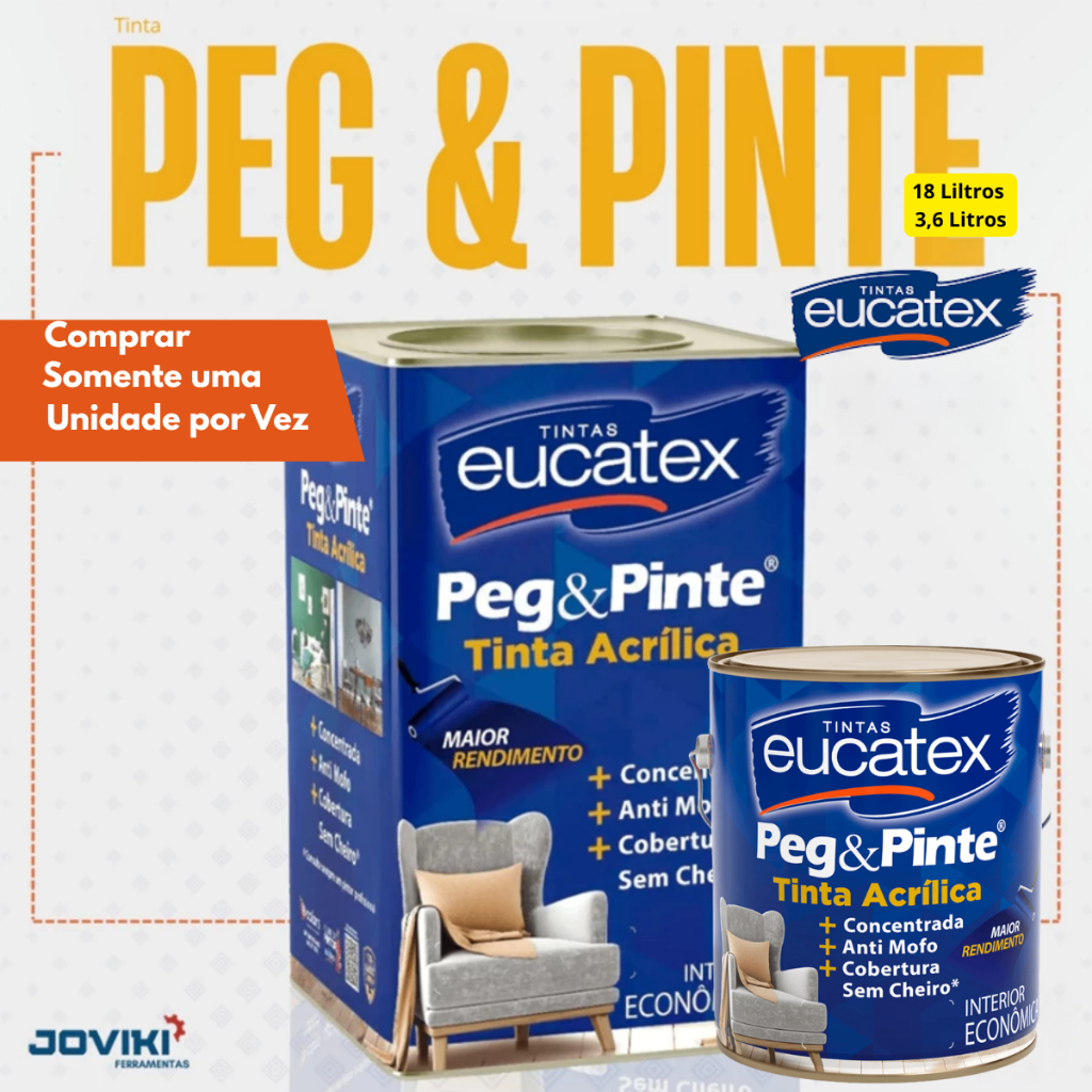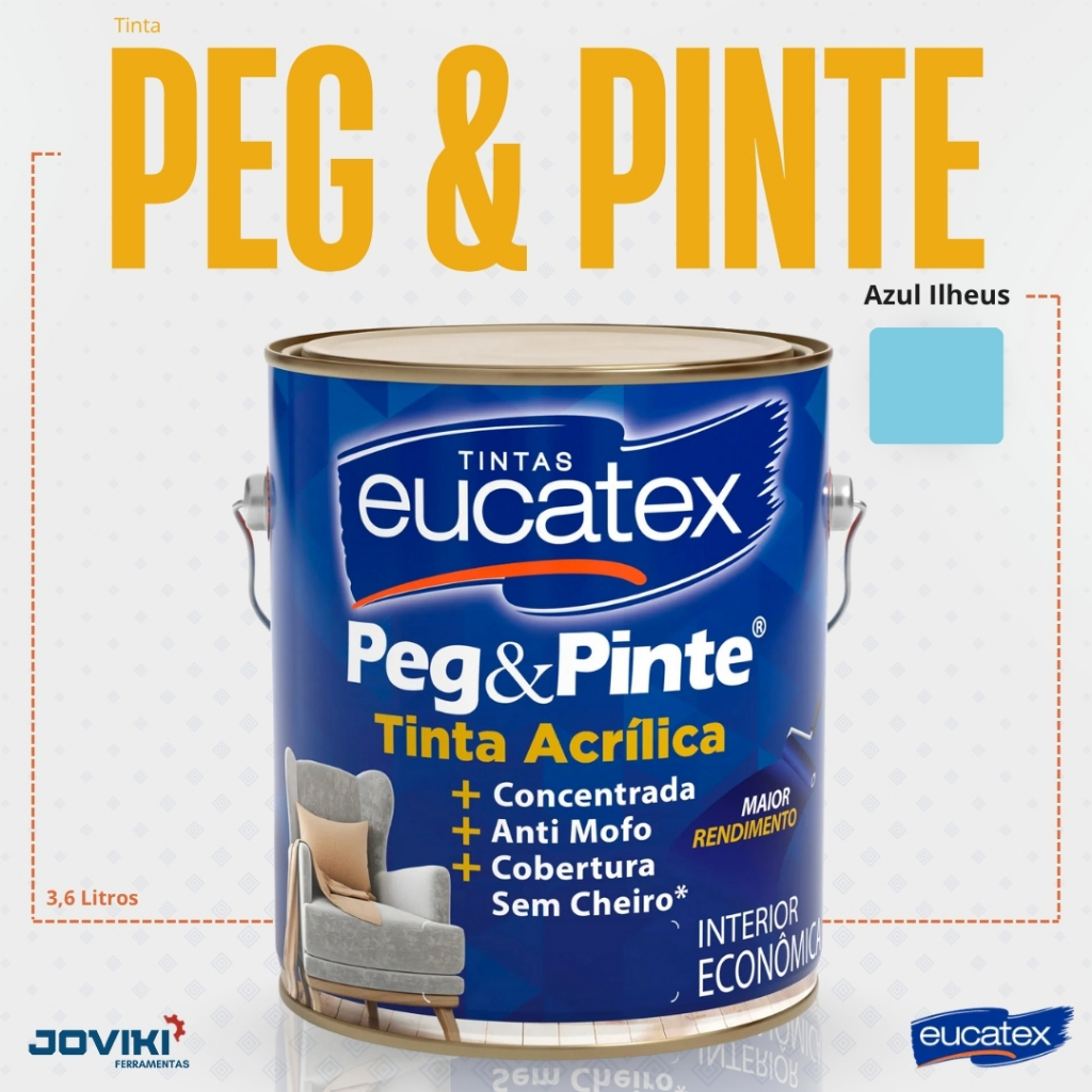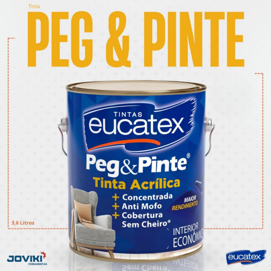 Tinta Eucatex Acrilica Pintura Parede de Interiores Peg E Pinte 18/3,6L Anti Mofo Sem Cheiro Cores