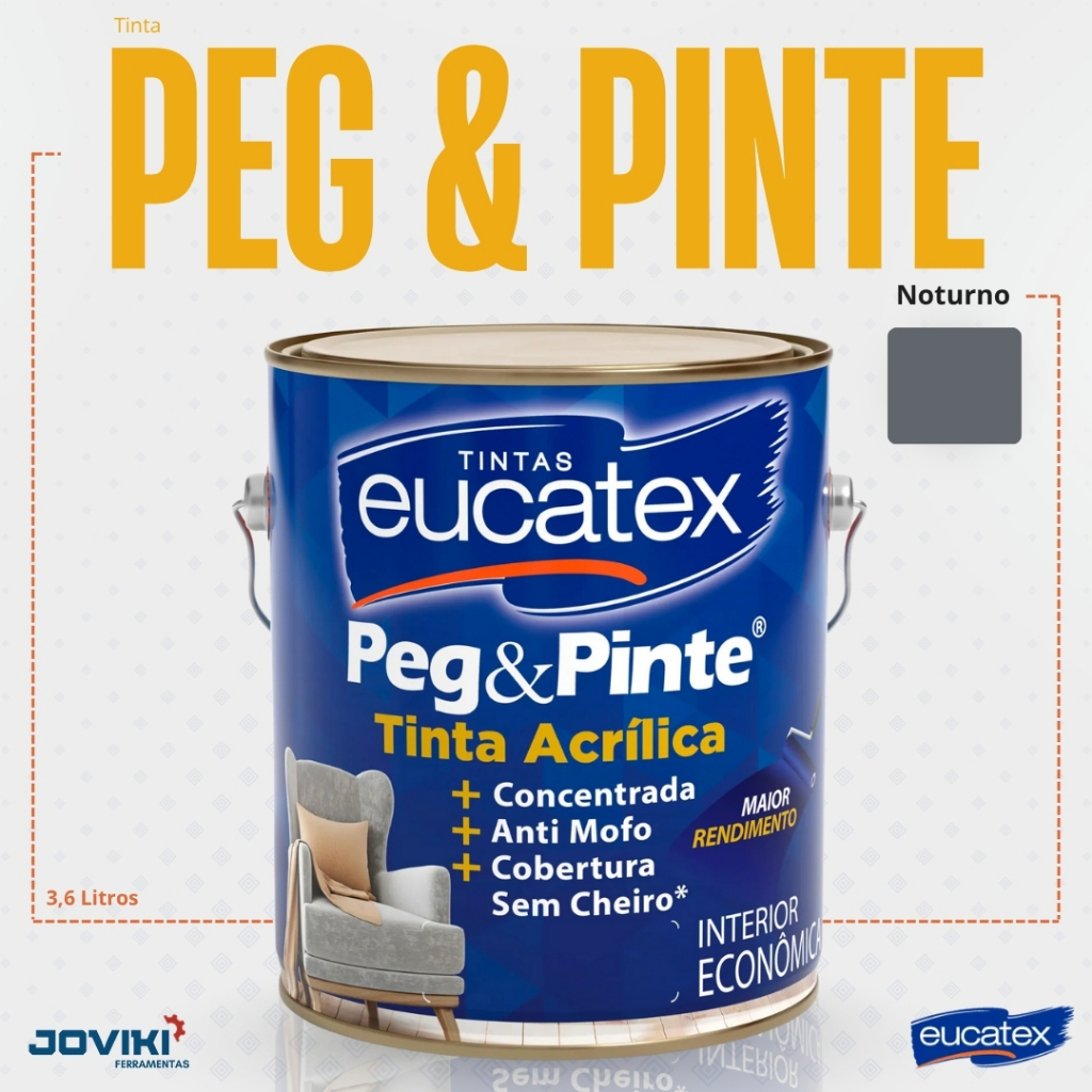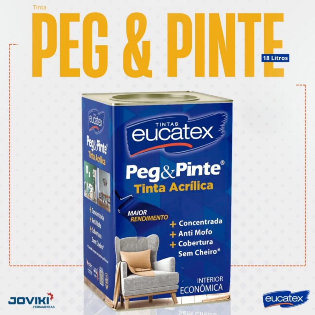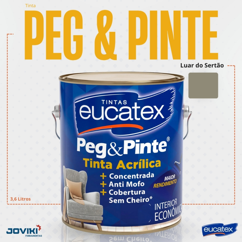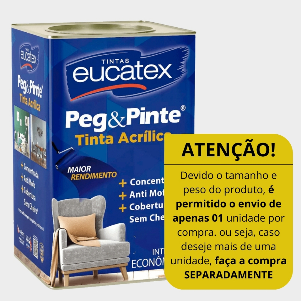 Tinta Eucatex Acrilica Pintura Parede de Interiores Peg E Pinte 18/3,6L Anti Mofo Sem Cheiro Cores