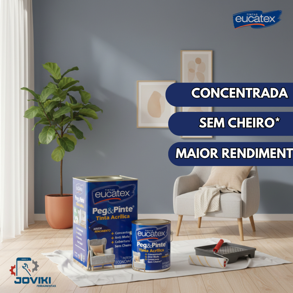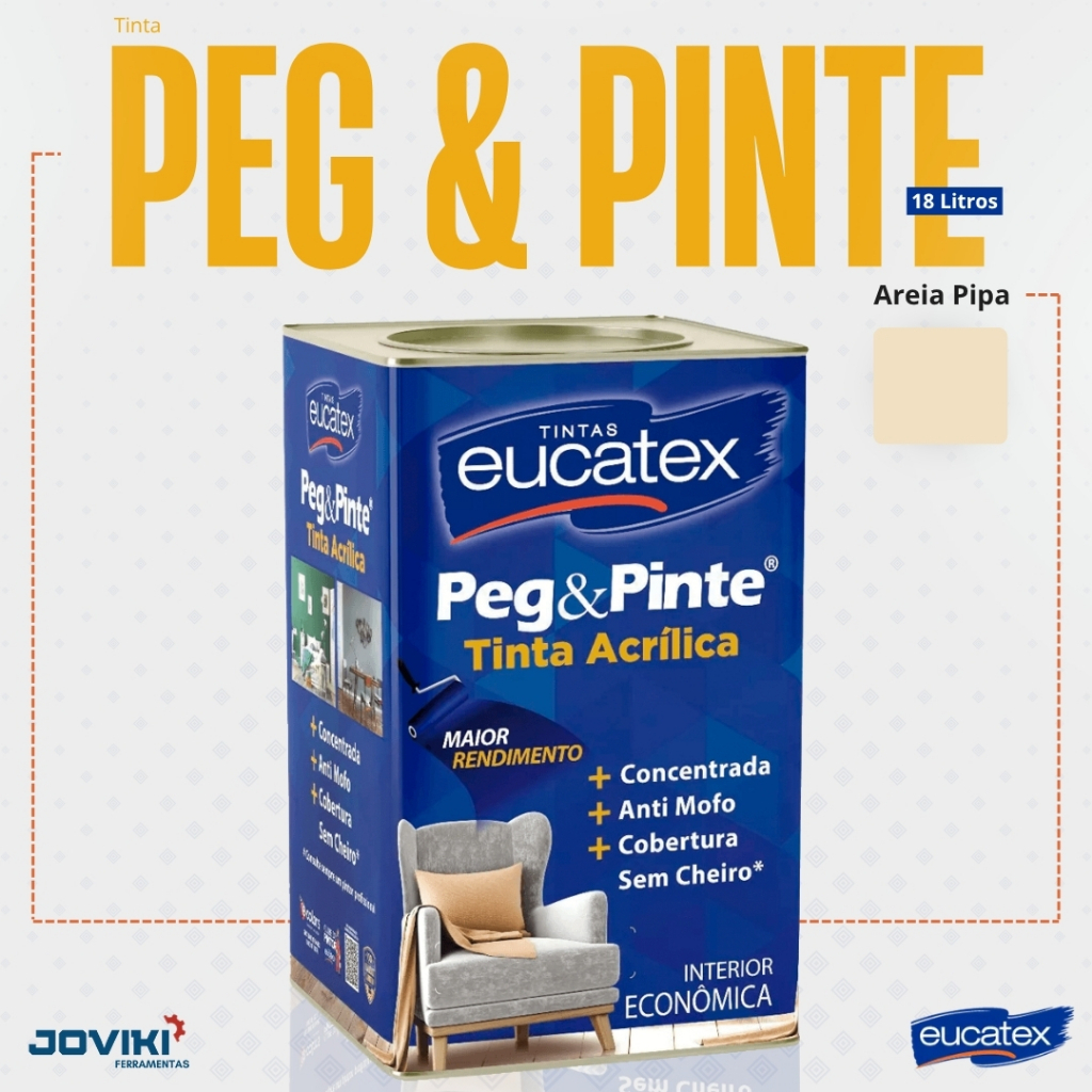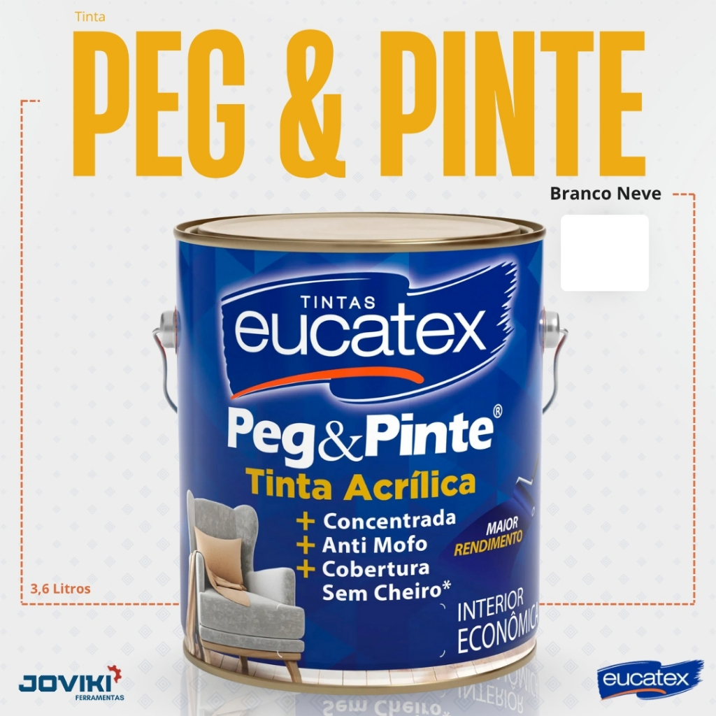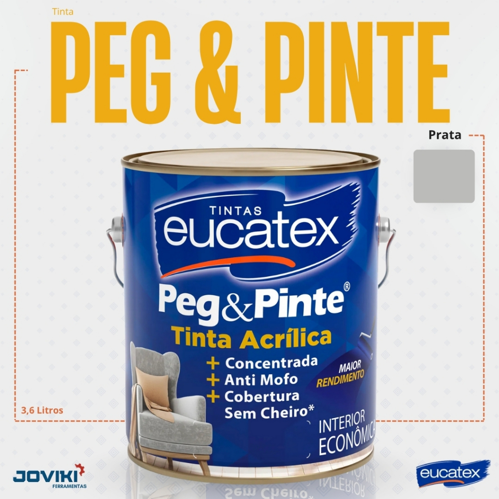 Tinta Eucatex Acrilica Pintura Parede de Interiores Peg E Pinte 18/3,6L Anti Mofo Sem Cheiro Cores