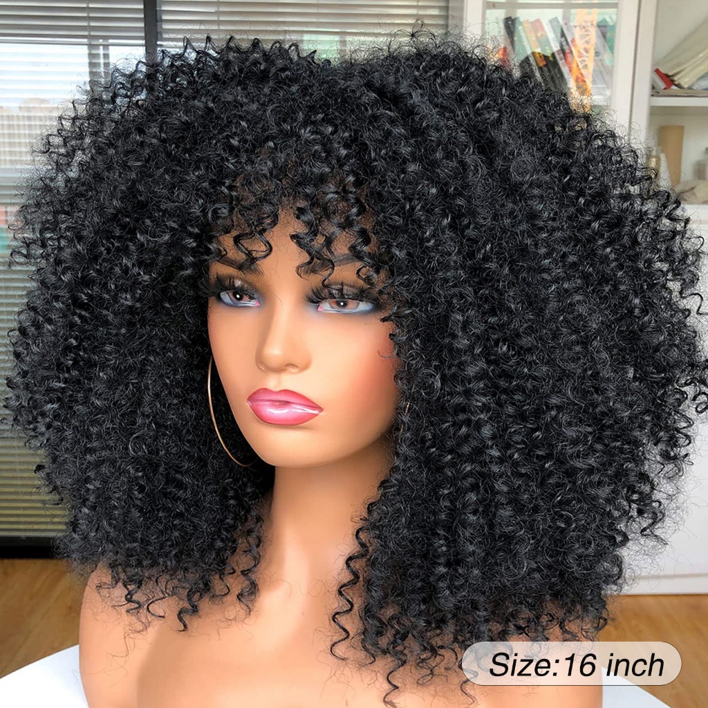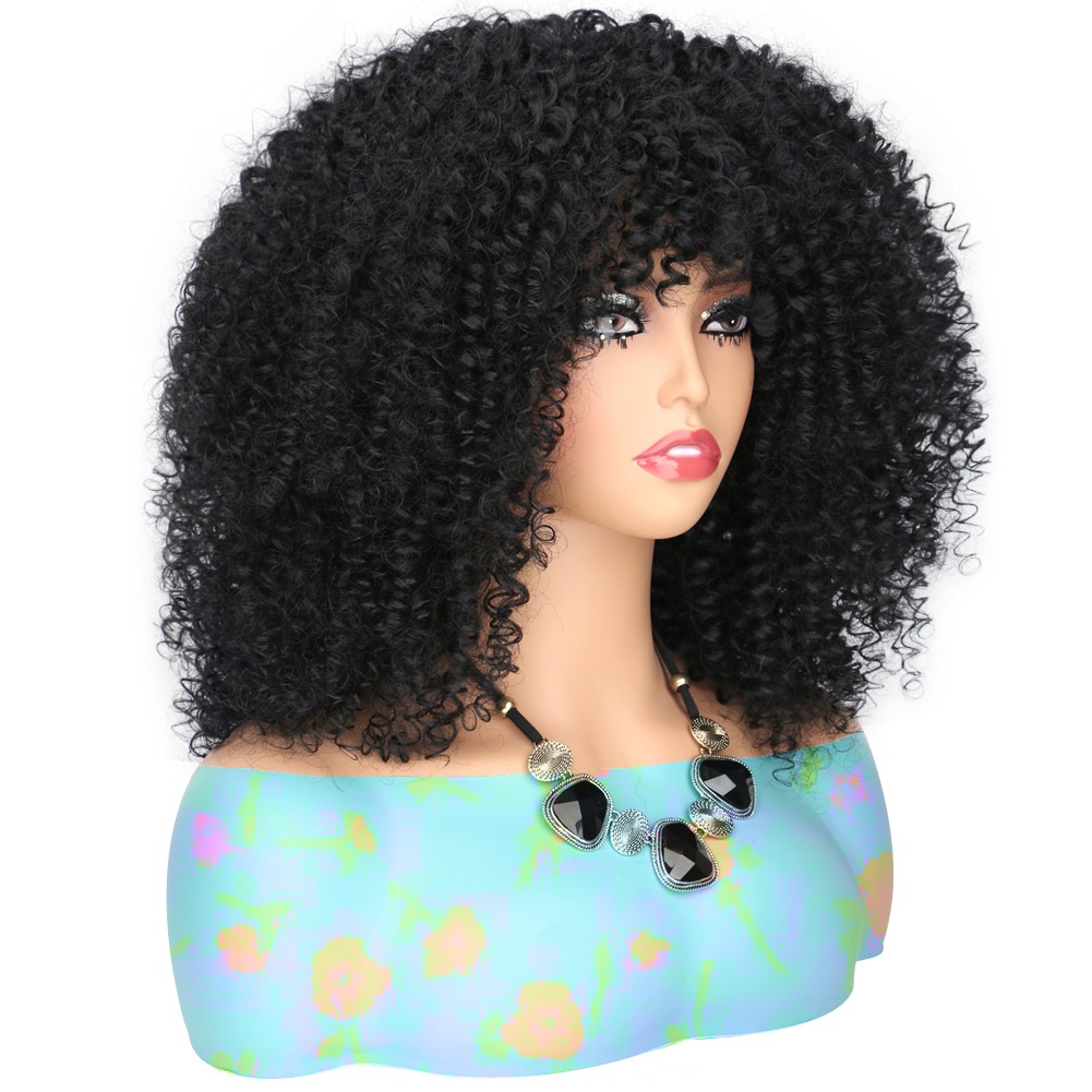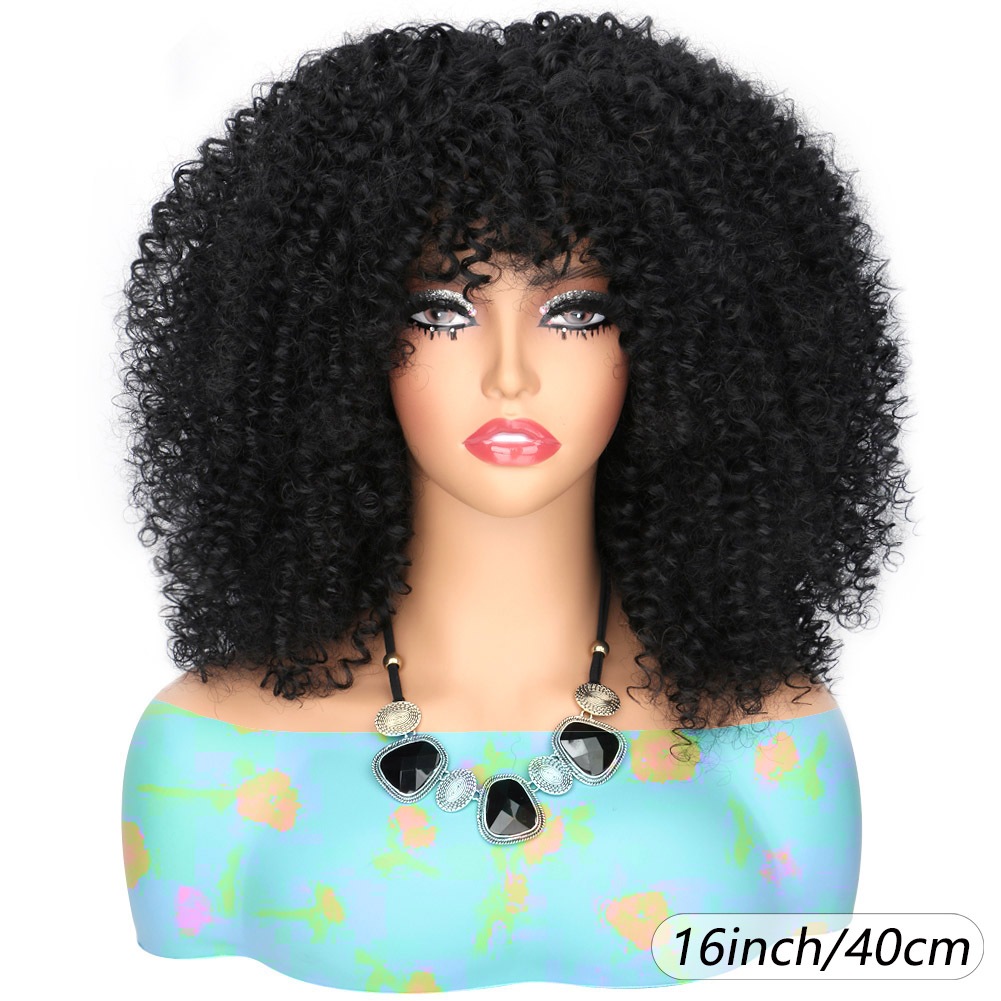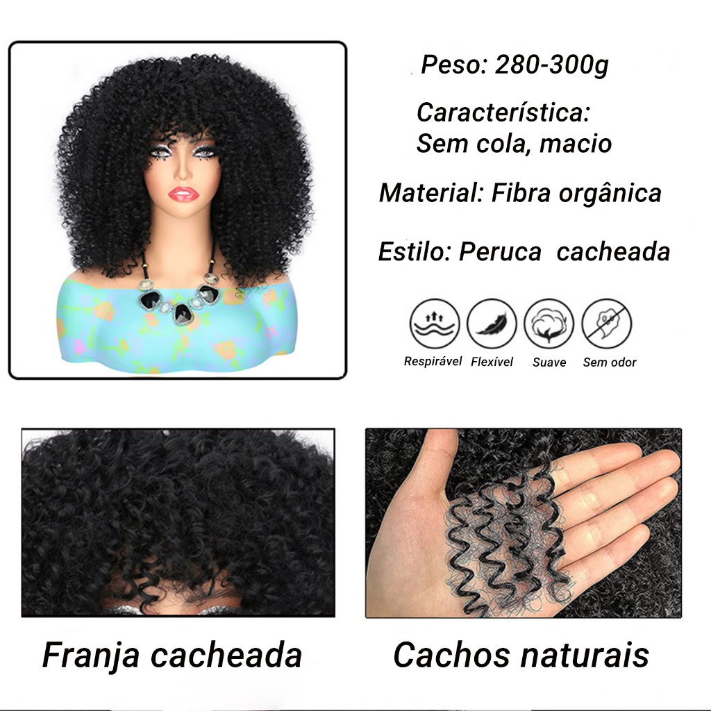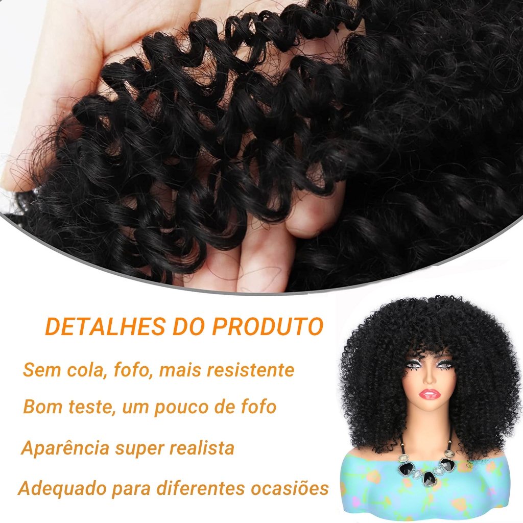 Perucas Cacheadas Para Mulheres Negras Peruca Afro Bomb Cacheada Preta com Franja Fibra Orgânica