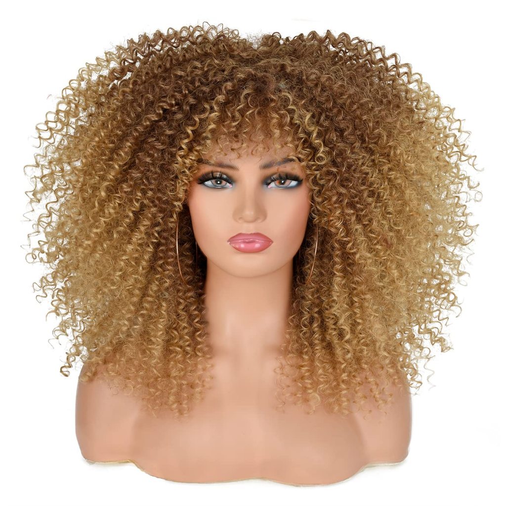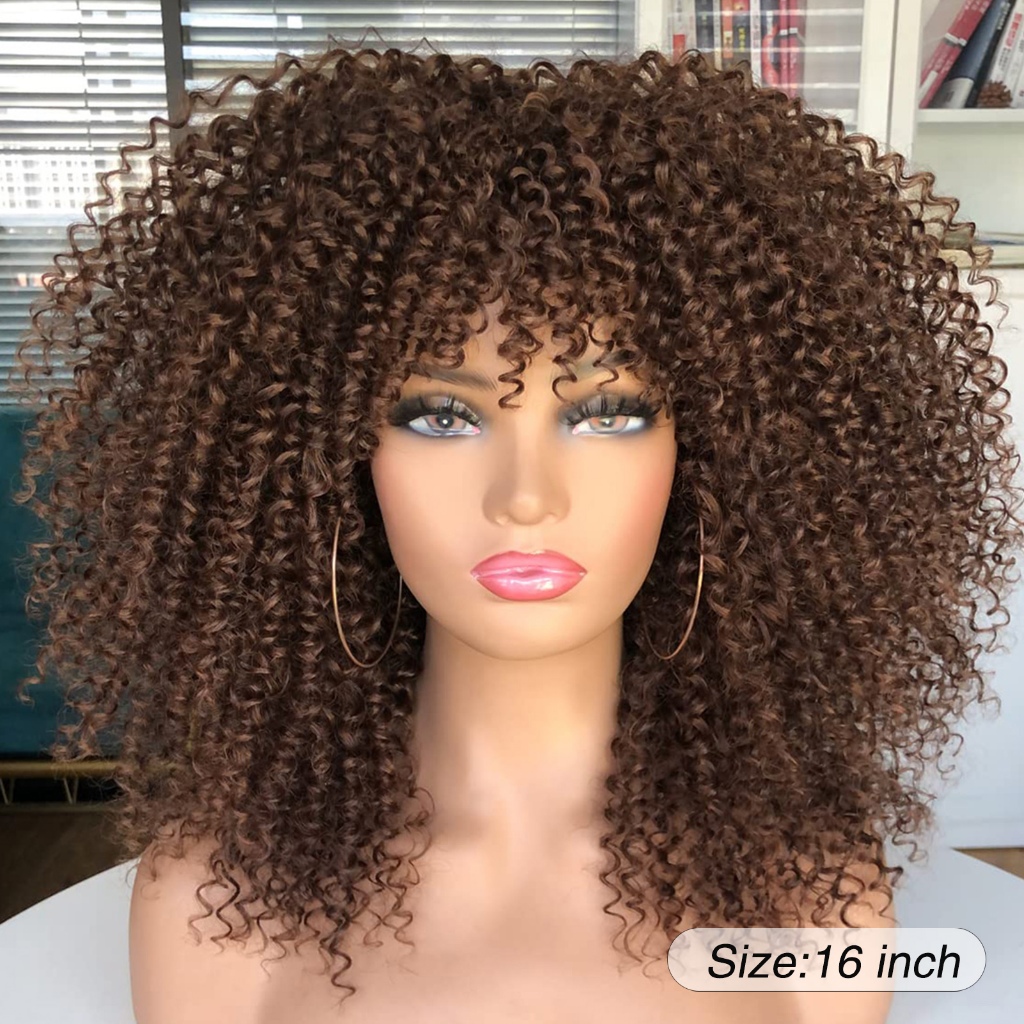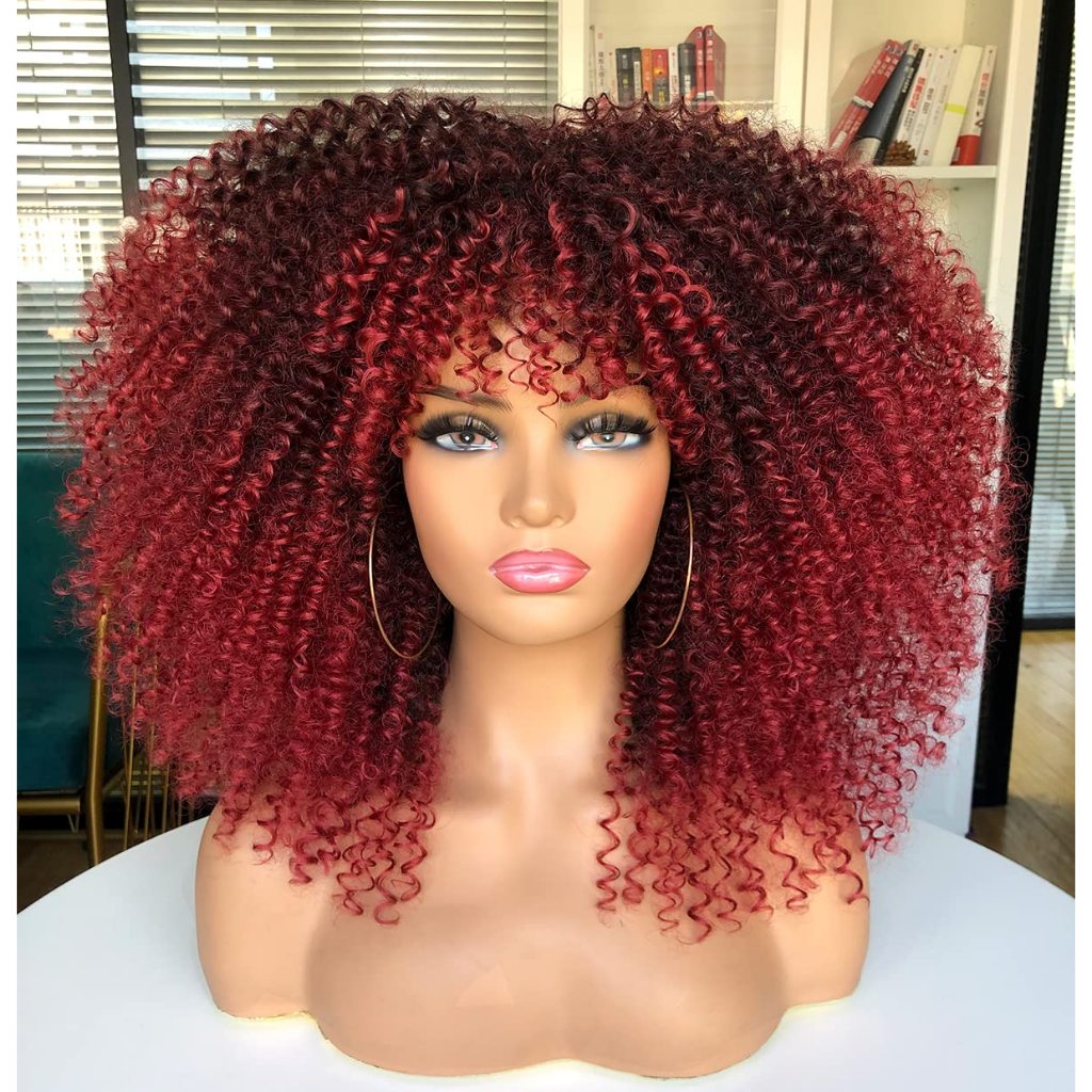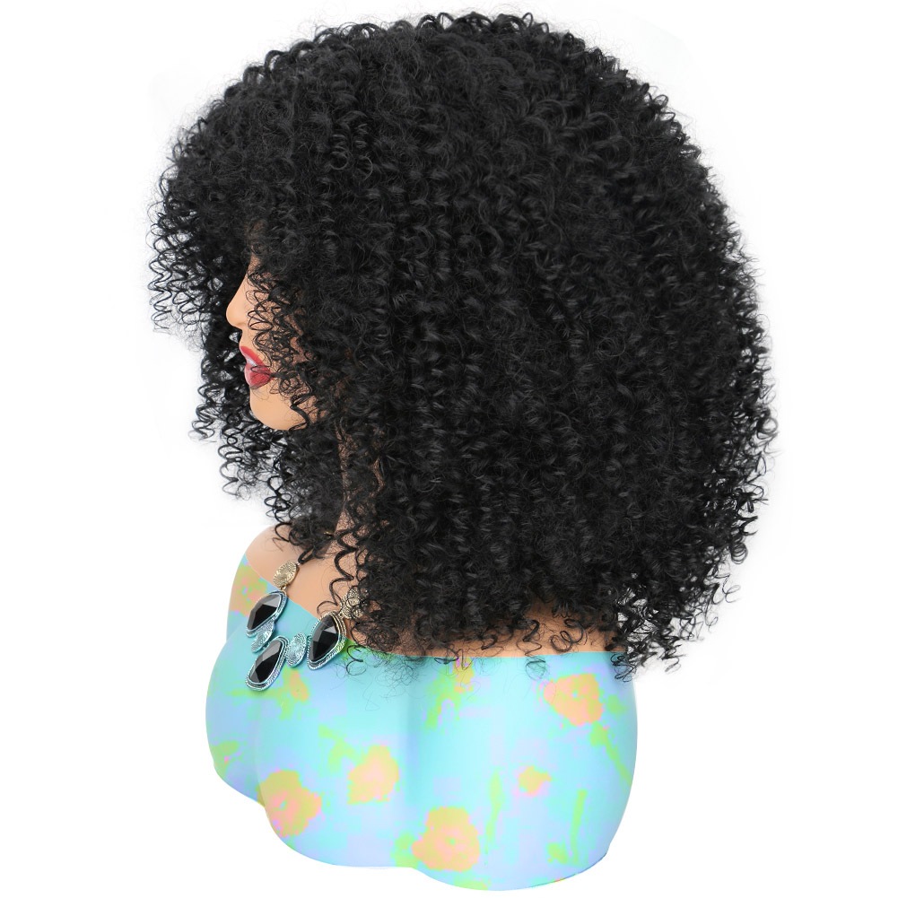 Perucas Cacheadas Para Mulheres Negras Peruca Afro Bomb Cacheada Preta com Franja Fibra Orgânica