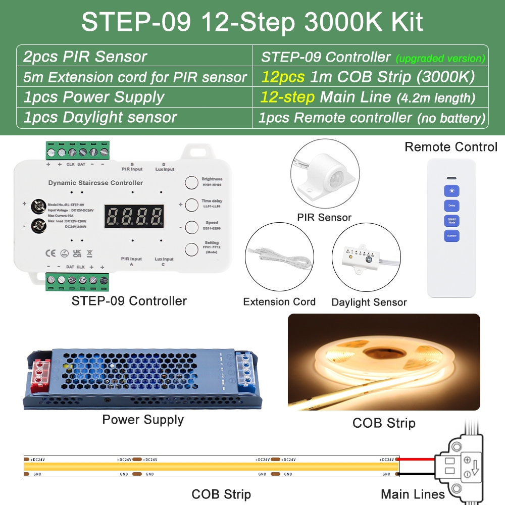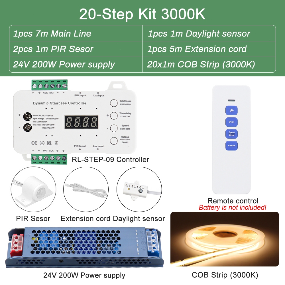 Fita LED de Escada Sensor de Movimento 10 12 16 20 Degraus Sem Fiação Luz Diurna Decoração de Escada