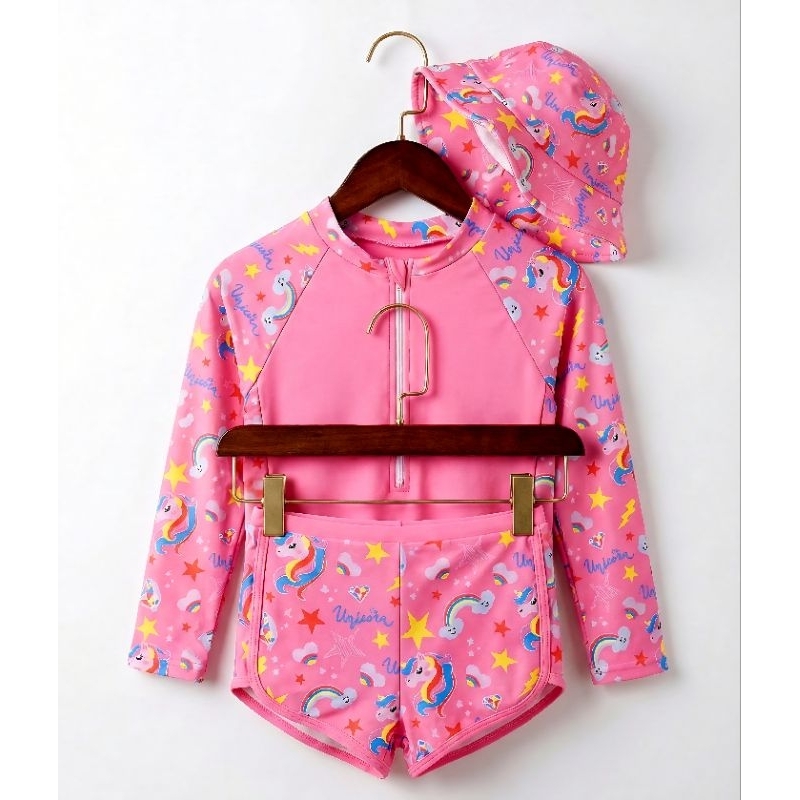 Maiô Infantil Poliamida com Proteção UV – Manga Longa e Chapéu | 2 a 9 Anos | Estampa Palmeiras