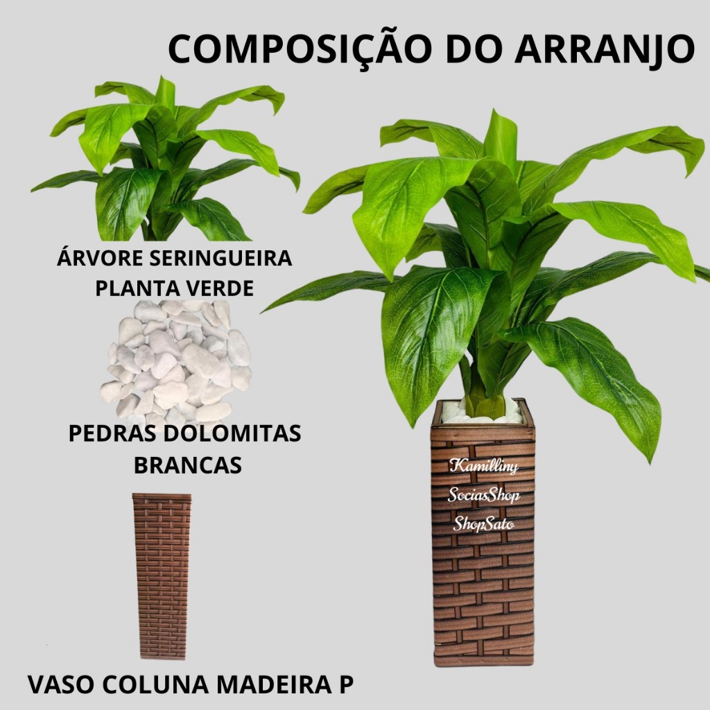 Kit Arranjo Completo Árvore Planta Seringueira No Vaso Coluna P Com Pedras Dolomitas Brancas, Decoração para Salas