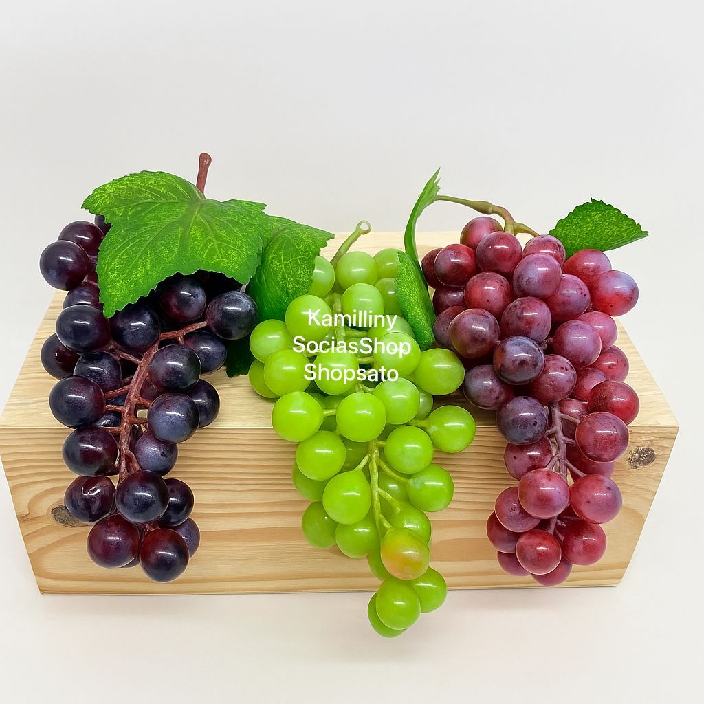 Kit 3 Cachos De Uvas Artificial Em Silicone 13cm Decoração Mesas Santa Ceia Frutas Falsas