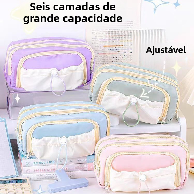 Estojo De Lápis Caneta Esferográfica De Papelaria Bolsa De Armazenamento Portátil Grande Capacidade Estudantes De VoltaW