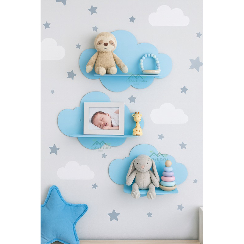 Kit Nuvem 3 nichos prateleiras decorativas para quarto de bebê Escolha sua cor