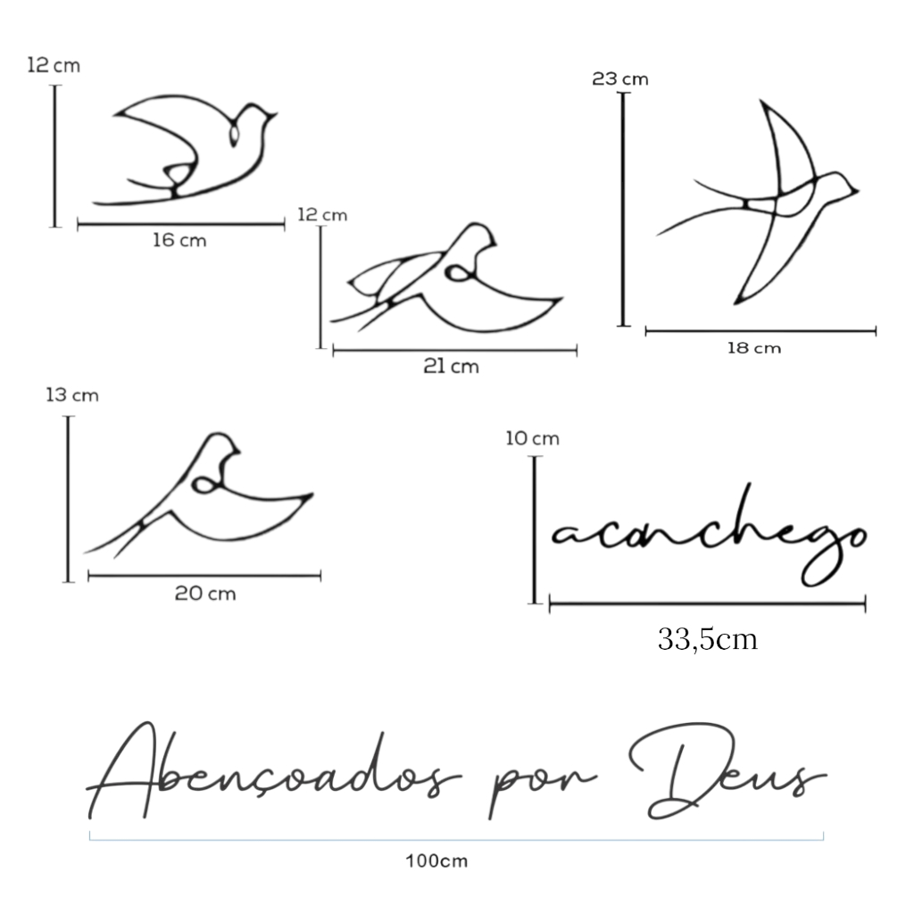 Kit 4 Pássaros + Aconchego + Abençoados por Deus - Presente - Peças Decorativas MDF Sala Quarto