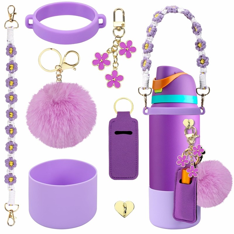 Acessórios para copos 24/32 onças, incluindo alça para garrafa de água, suporte para protetor labial, bota, chaveiros