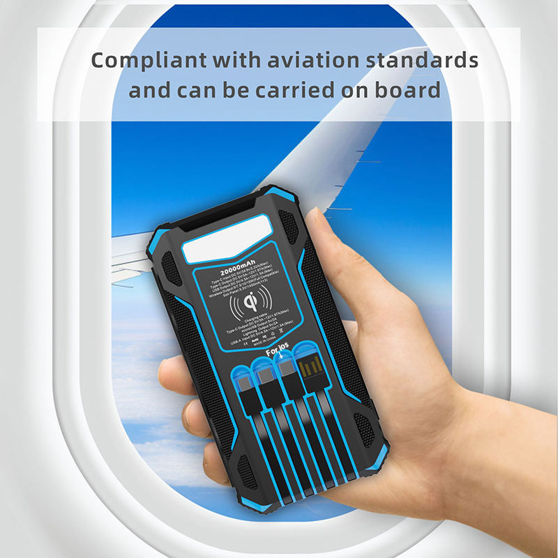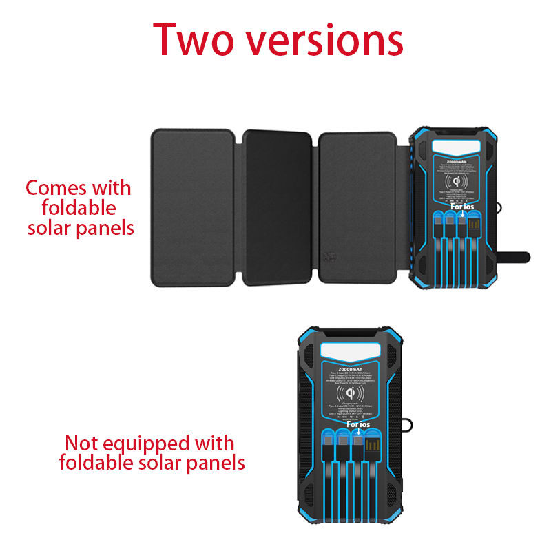 Carregador Solar Portátil-20000mAh Sem Fio com 4 Cabos e 4 Painéis Solares Integrados,Ideal para Camping e Viagens