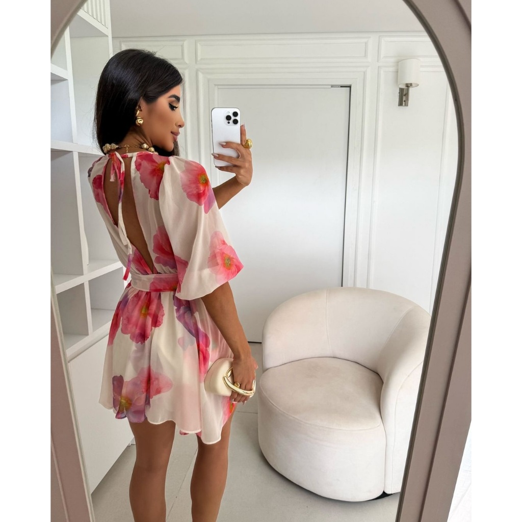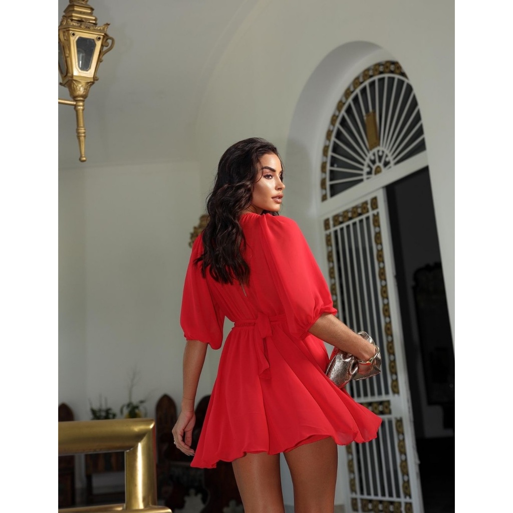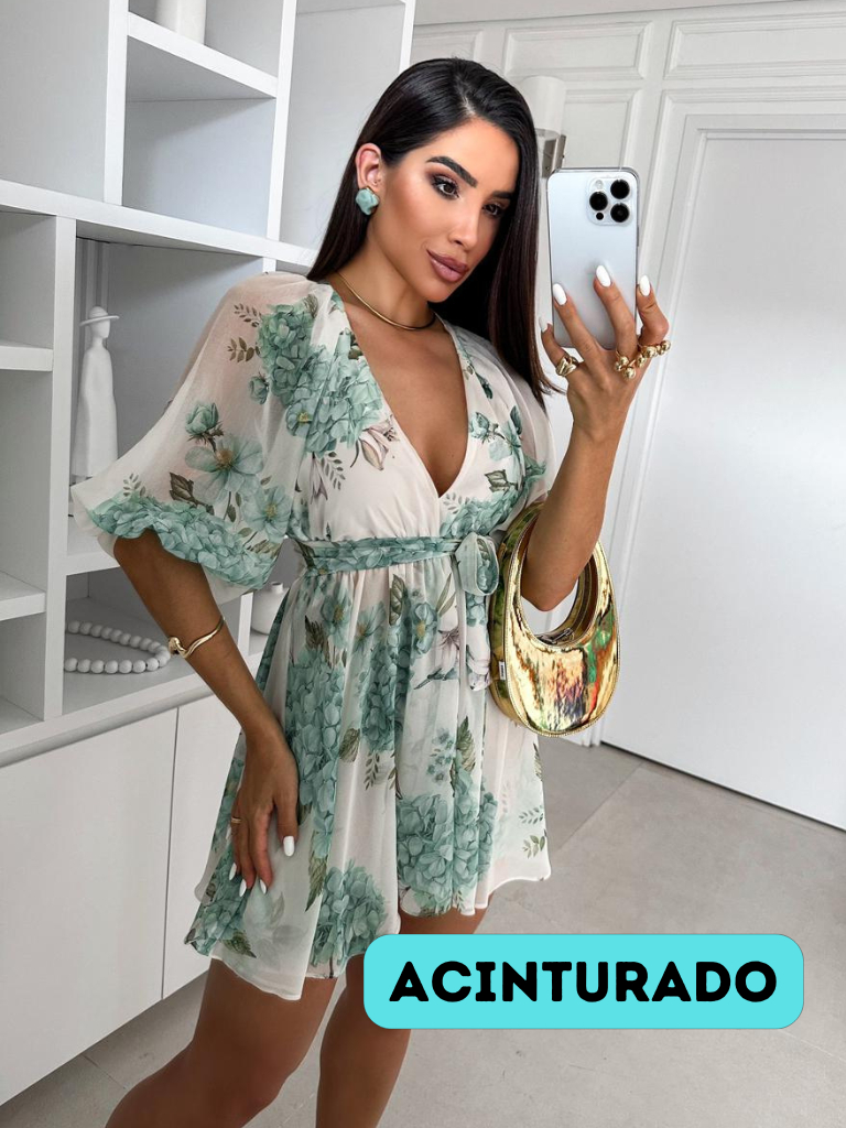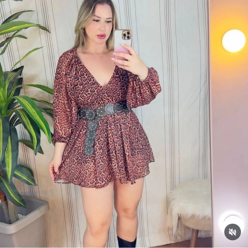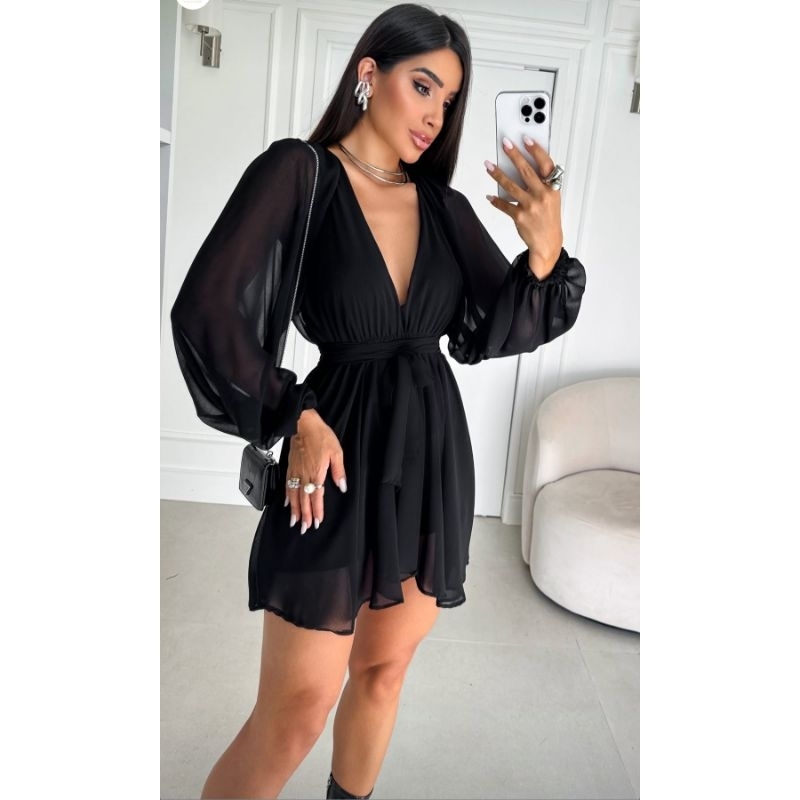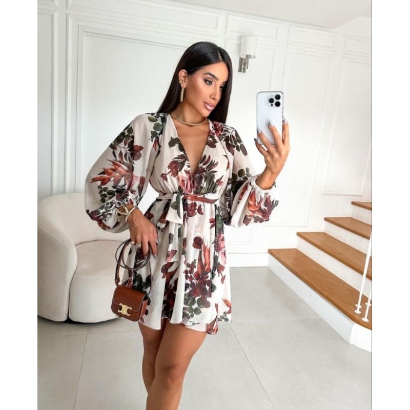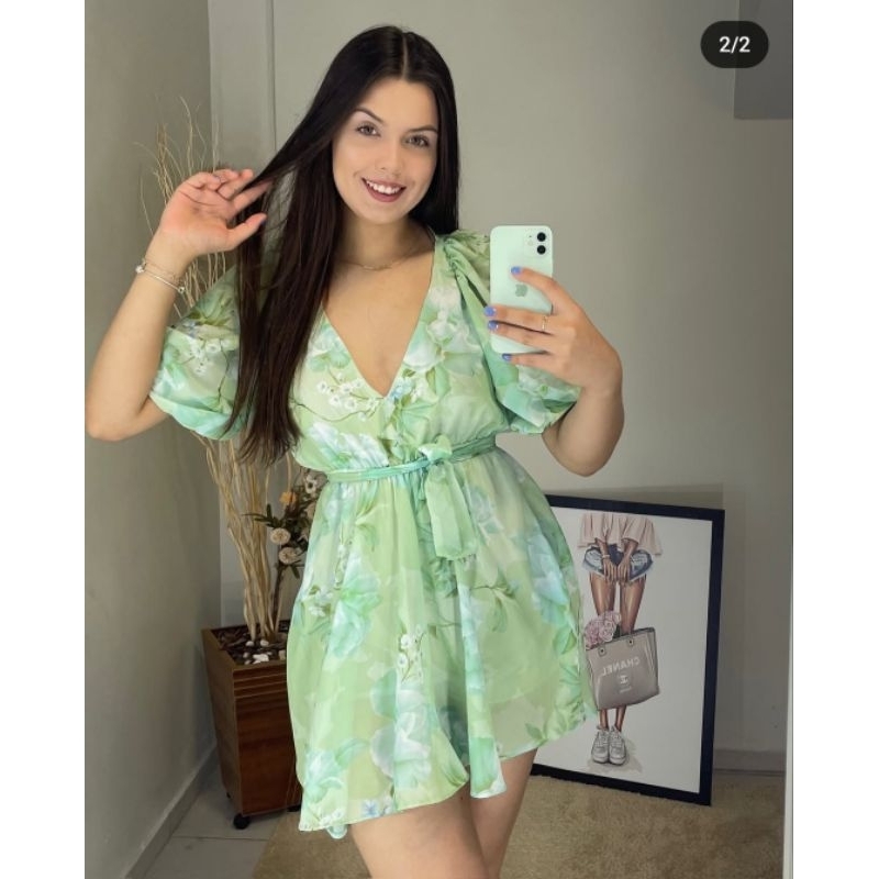 Vestido macaquinho feminino Boho chic chiffon soltinho manga buffant outono inverno verão