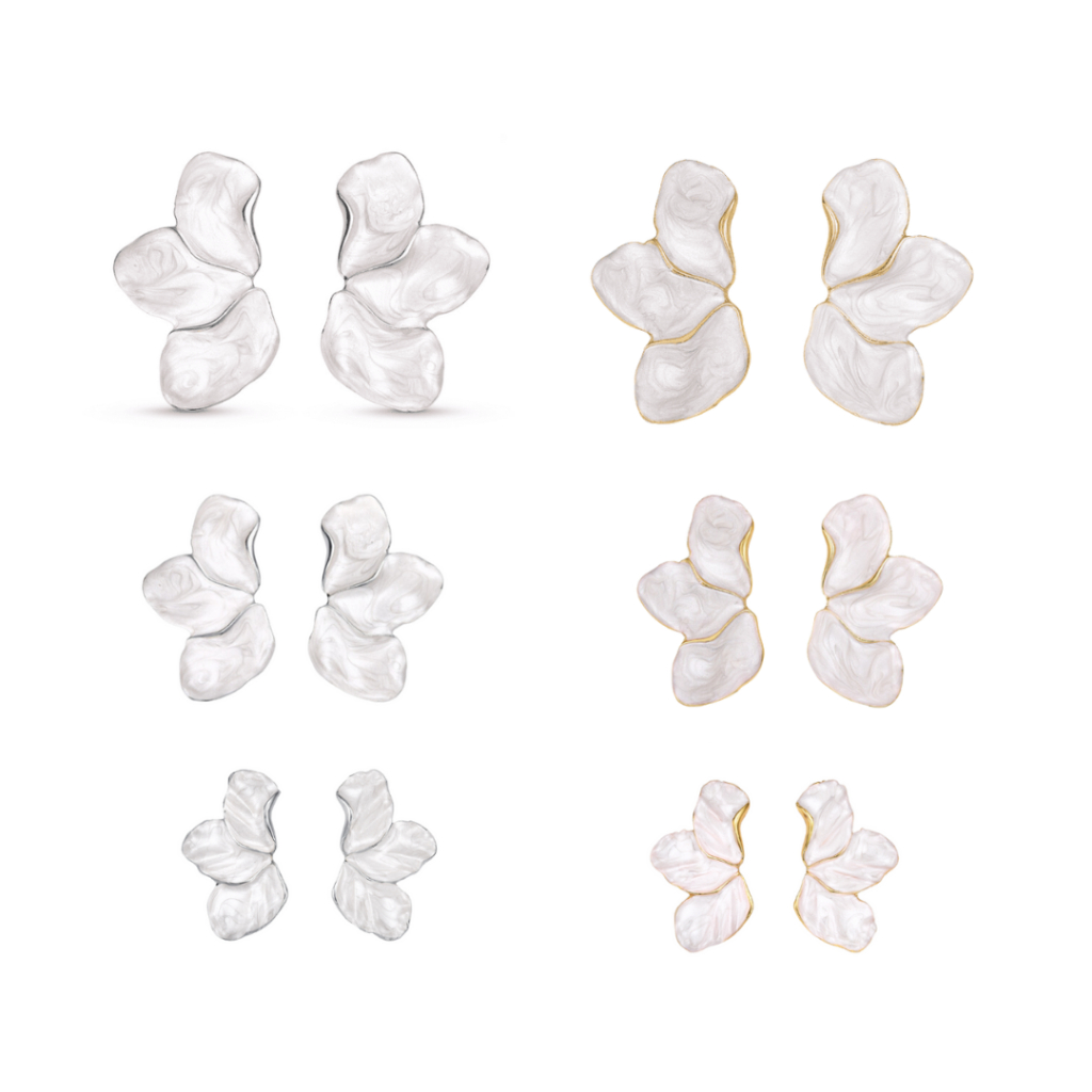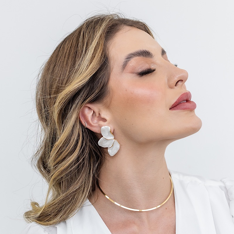 Brinco Feminino Meia Pétala Mini/Média/Grande Madrepérola Prata E Dourado Elegante P/ Festas E Casamentos