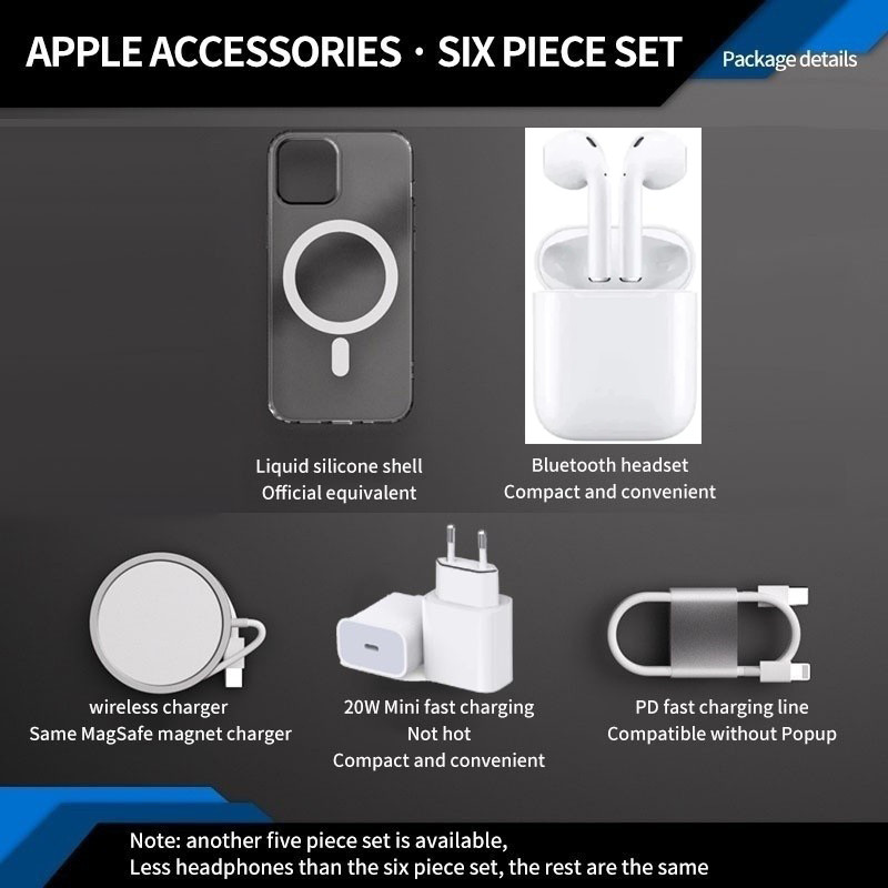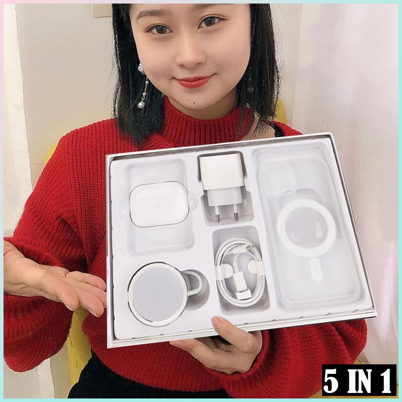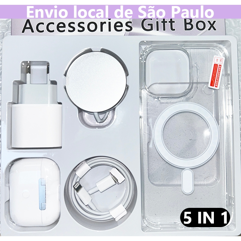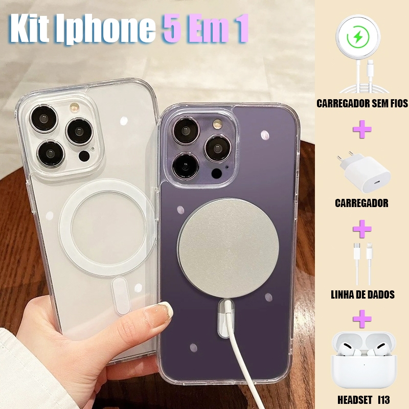 2025 Novo Kit 5 em 1 MagSafe para iPhone | Inclui Capa + Cabo + Suporte AirPods | Compatível com 11mini/XSR/12-15