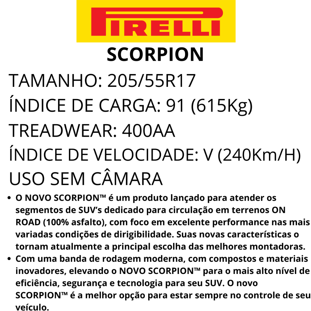 Pneu Pirelli 205/55r17 91v Scorpion Vw Tiguan Tcross Elantra Cruze