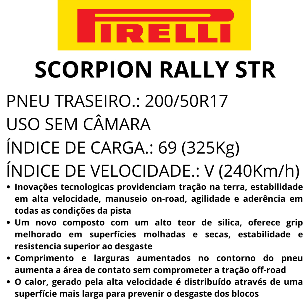 Pneu Moto 150/70r17 Traseiro Scorpion Rally Str Uso Sem Câmara