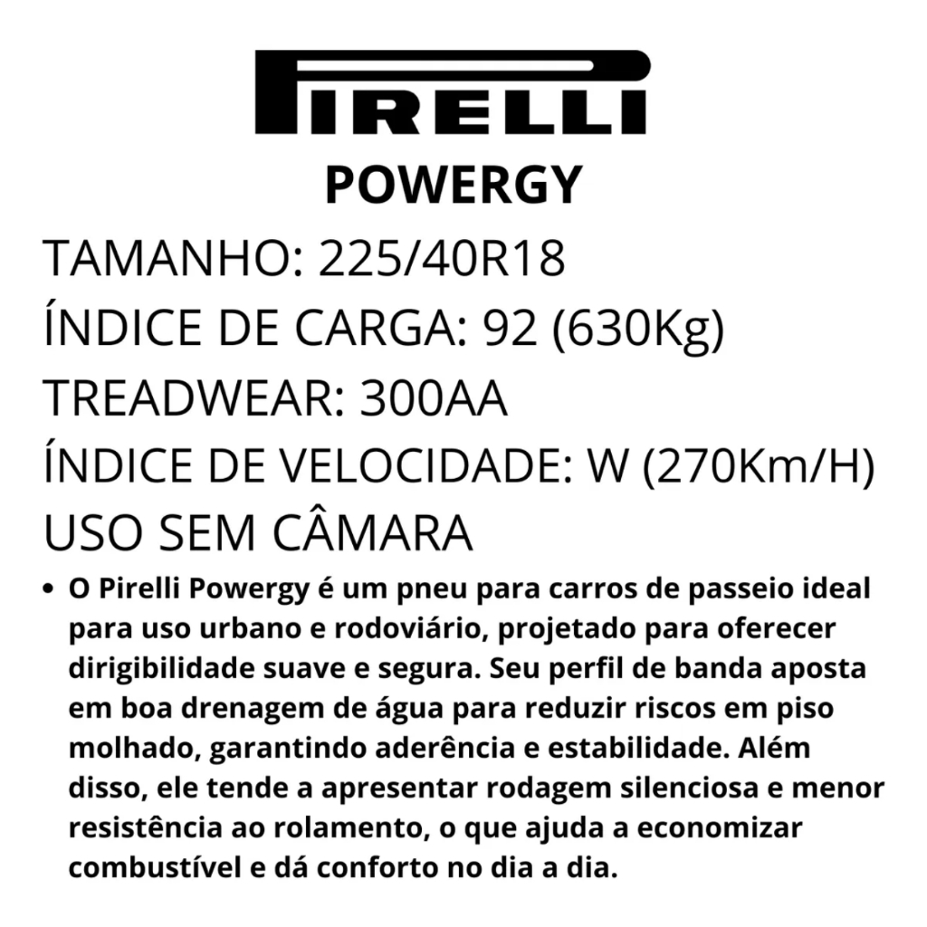 Pneu Pirelli Aro 18 225/40r18 92w Powergy