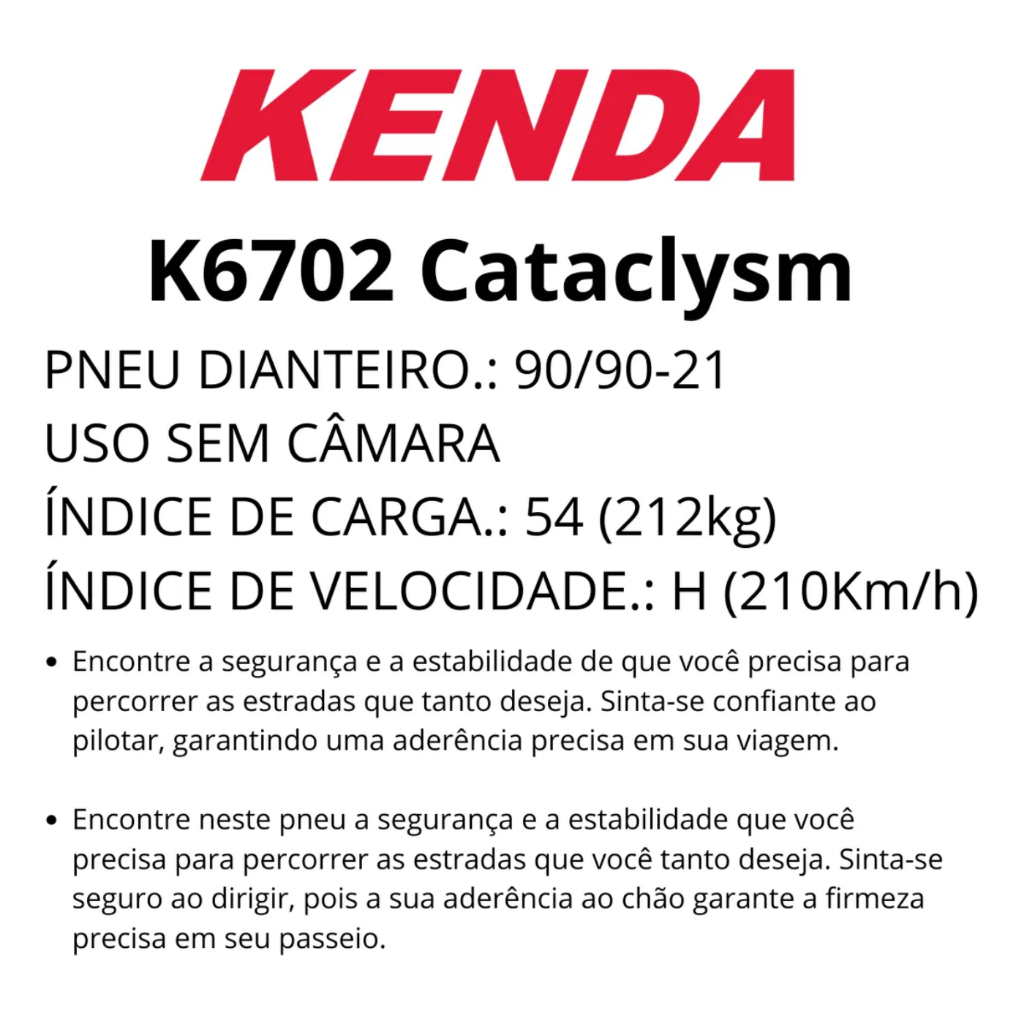 Pneu Honda Shadow 750 Dianteiro 90/90-21 54h Kenda Cataclysm