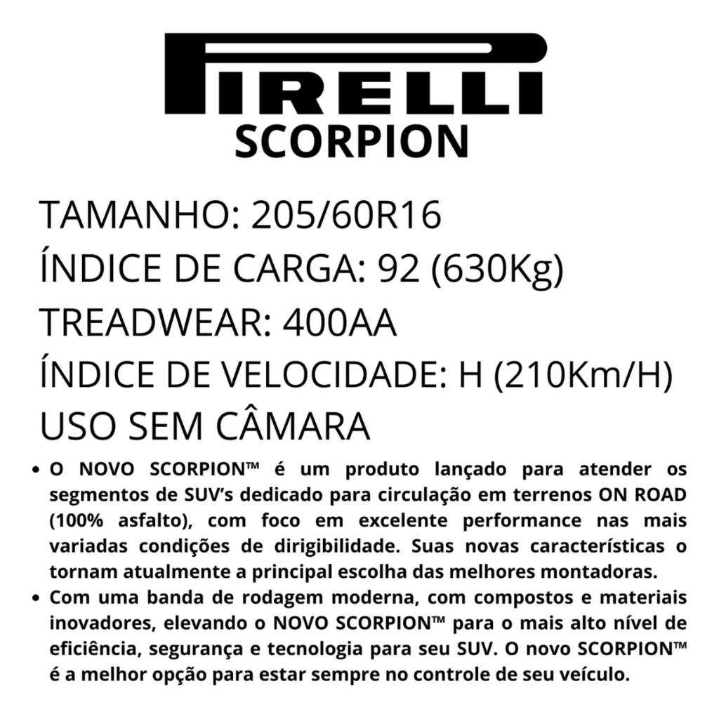 Pneu 205/60r16 92h Scorpion Pirelli Aro 16