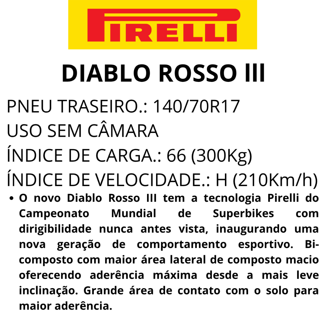 Pneu Moto Original 140/70r17 Traseiro Pirelli Diablo Rosso 3 66H Uso Sem Câmara