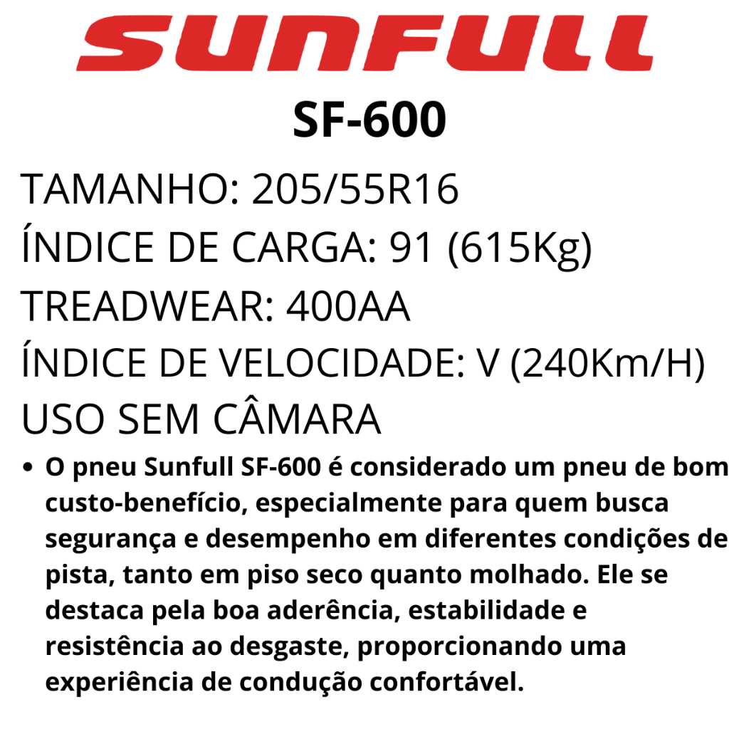 Pneu Carro 205/55R16 SF-600 91V Sunfull