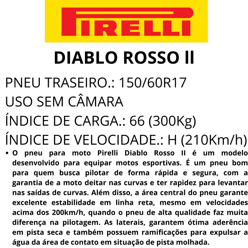 Pneu Moto 150/60r17 Traseiro Pirelli Diablo Rosso 2 Uso Sem Câmara